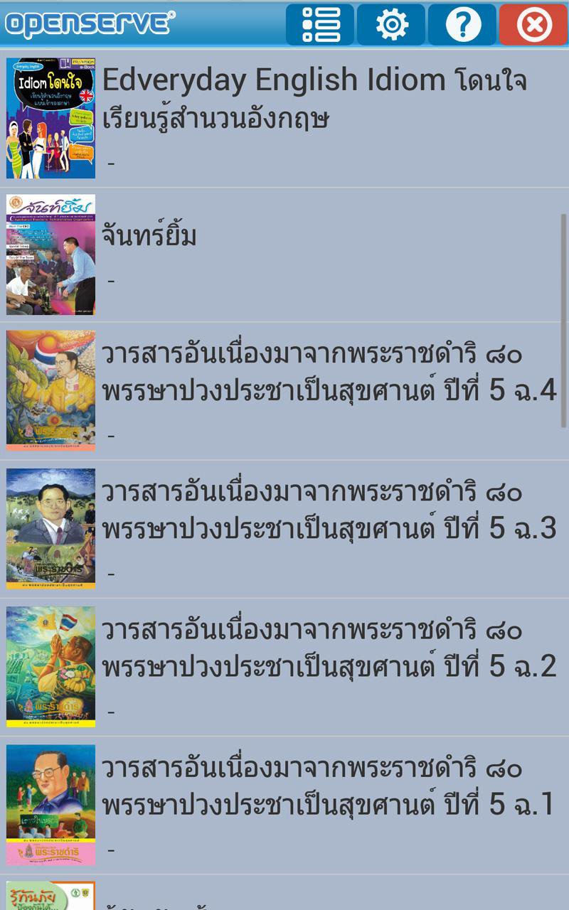 E-Book Openserve นอกจากนี้ยังมีคุณสมบัติที่ช่วยให้ผู้ใช้จัดเก็บและการเลือกประเภทของหนังสือ ด้วยการจัดการที่เป็นระบบหมวดหมู่ของรายการในห้องสมุดจะแบ่งออกเป็นประเภท: หนังสือพิมพ์หนังสือ; นิตยสาร; อัลบั้มภาพและแคตตาล็อก พวกเขาสามารถที่จะค้นหาต่อไปด้วยคำหลักดัชนีเรียงตามตัวอักษร เนื้อหาของห้องสมุดสามารถแสดงโดย: ชื่อผ้าห่มแสดงกระดูกสันหลังหรือรายชื่อ