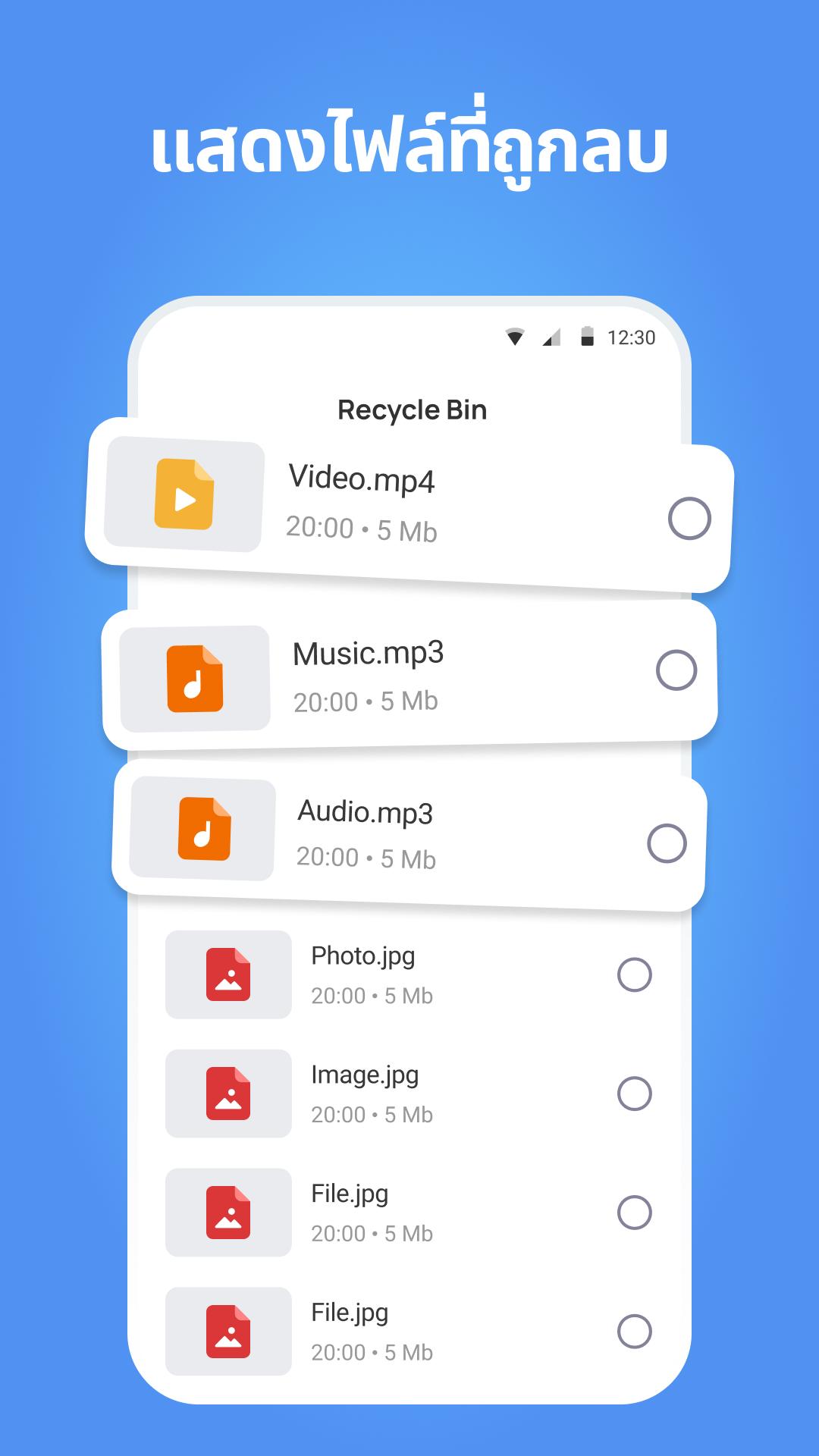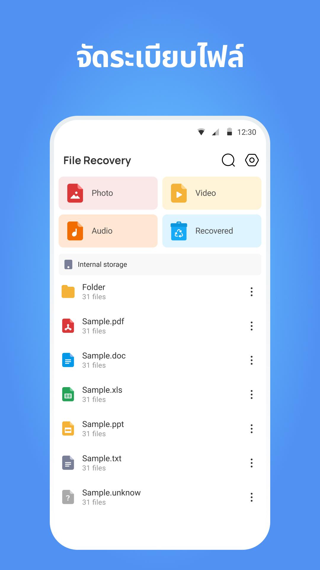 บอกลาความเสียใจจากการสูญเสียไฟล์อันมีค่าของคุณ การกู้คืนไฟล์, การกู้คืนข้อมูล เป็นโซลูชันที่ใช้งานง่ายสำหรับการเรียกคืนรูปภาพ วิดีโอ ไฟล์เสียง และไฟล์สำคัญอื่น ๆ ที่ถูกลบ ไม่ว่าจะเป็นช่วงเวลาที่ซาบซึ้งที่บันทึกไว้ในกล้องหรือเอกสารสำคัญ แอปของเราจะฟื้นคืนชีวิตให้กับช่วงเวลาเหล่านั้นอย่างรวดเร็ว