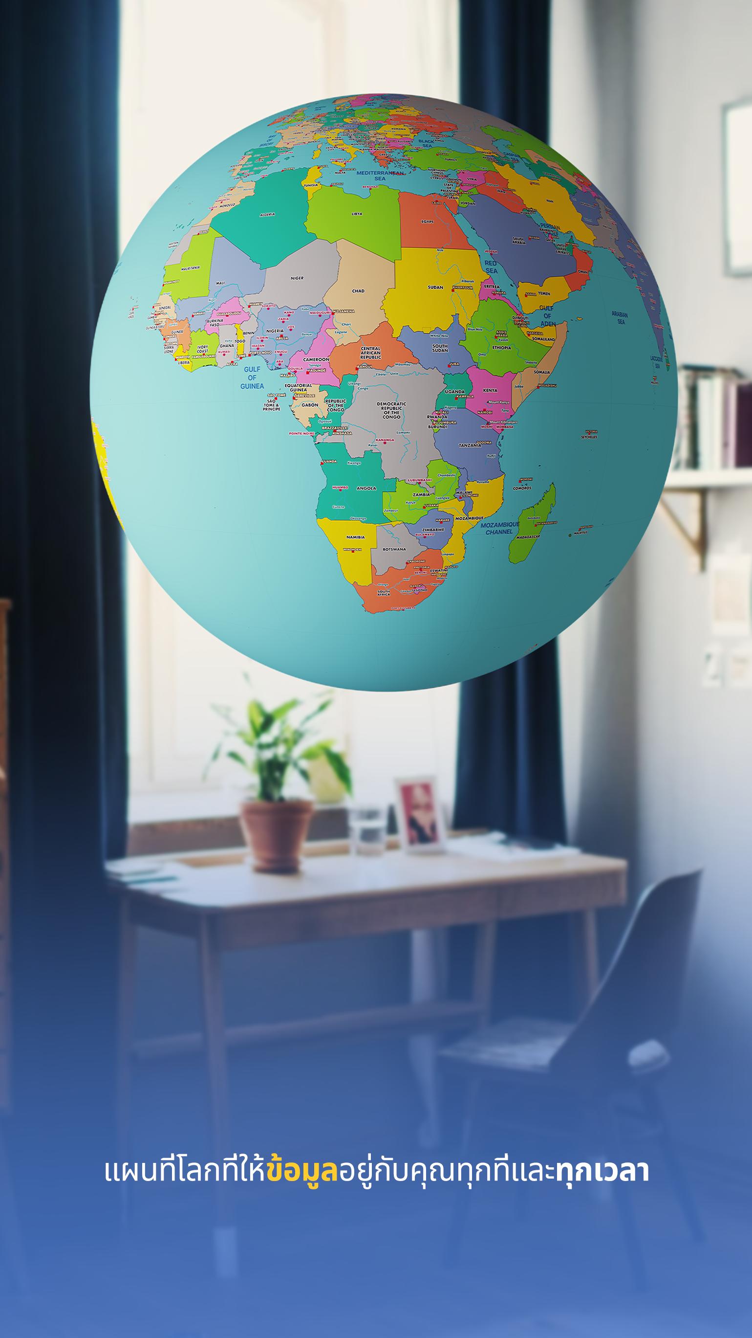 นอกจากนี้ยังมีแผนที่โลกในแอป คุณสามารถใช้แบบออฟไลน์เพื่อรับข้อมูลเกี่ยวกับประเทศต่างๆ ในโลกของเราหรือค้นหาตำแหน่งภูเขาได้อย่างแม่นยำ