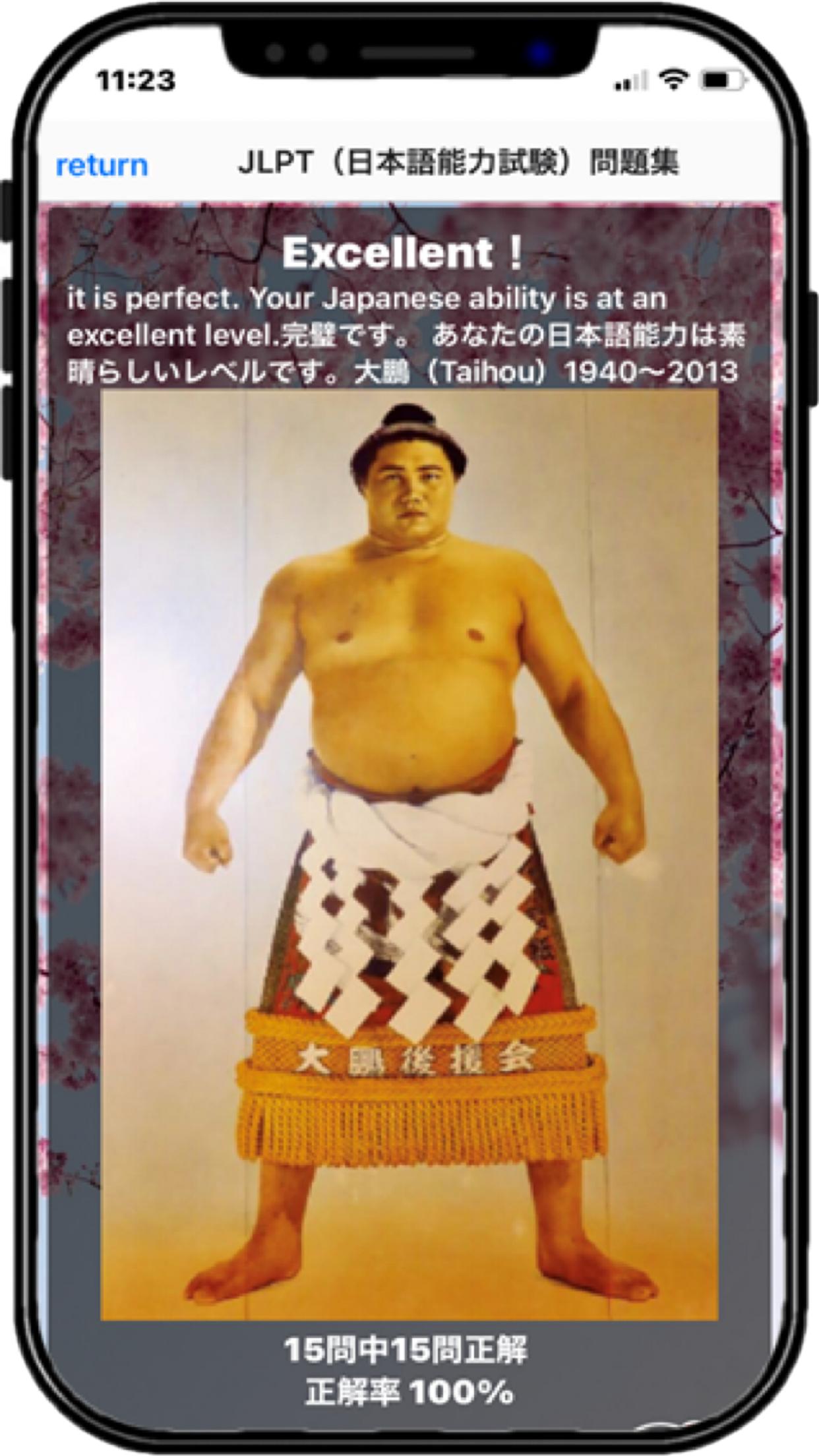 รวมคำถามจาก N5 ถึง N1 ของแบบทดสอบวัดระดับความสามารถทางภาษาญี่ปุ่น มีคำถามเกี่ยวกับคำศัพท์และไวยากรณ์ ลองทำคำถามหลายๆ ข้อหลายครั้งและชนะบัตร ฉันแน่ใจว่าคุณทำได้ ทุกครั้งที่คุณทำกลุ่มคำถามครบหนึ่งข้อ คุณจะ ได้รับข้อความให้กำลังใจจากหนึ่งในผู้ยิ่งใหญ่ทางประวัติศาสตร์ของญี่ปุ่น