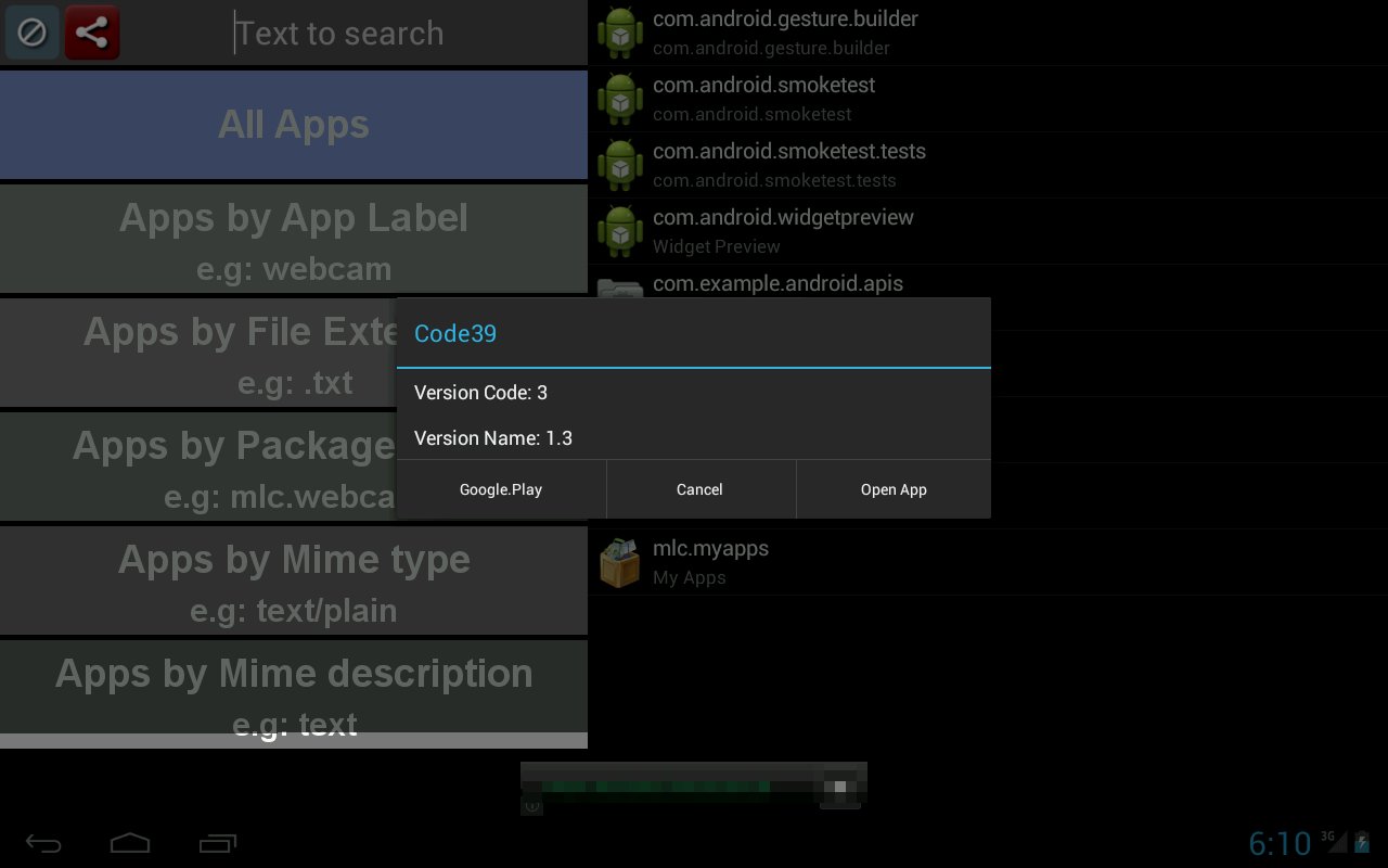 Find Apps by Mime type, e.g: text/plain