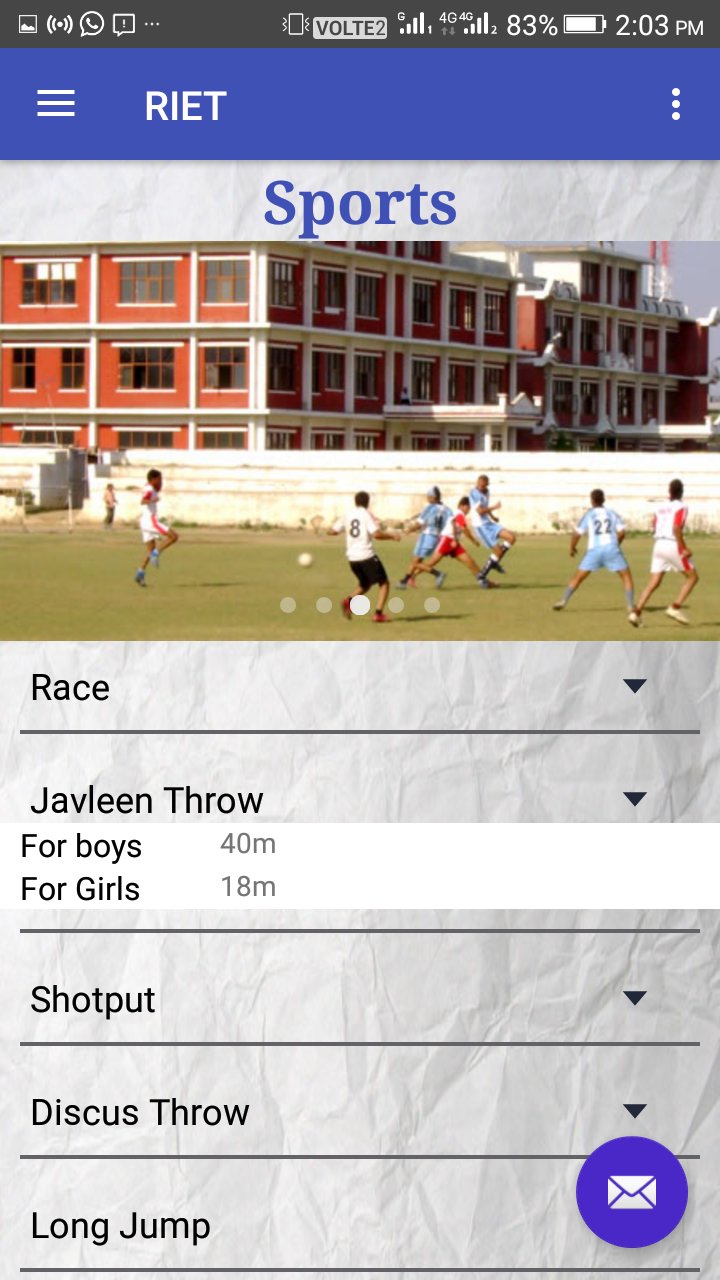 With R.I.E.T. College App every one can view all the details about our Courses, sports events and others. All students all Ramgarhia Institute of Engineering and Technology can get all online notification regarding events and any other occasions . It also has facility where students after login their account they can able to get information regarding seminars , training & placements and many more.