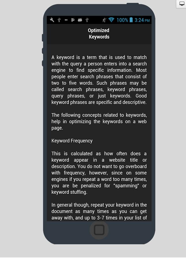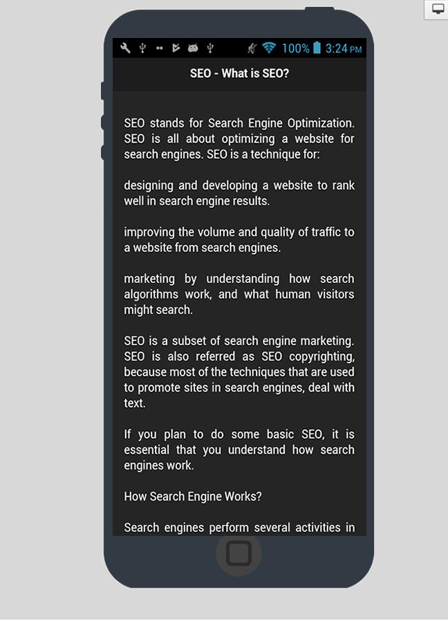 This app will help you to learn SEO step by step with easy method. This in not a seo tool, it is a SEO basics book or guide.