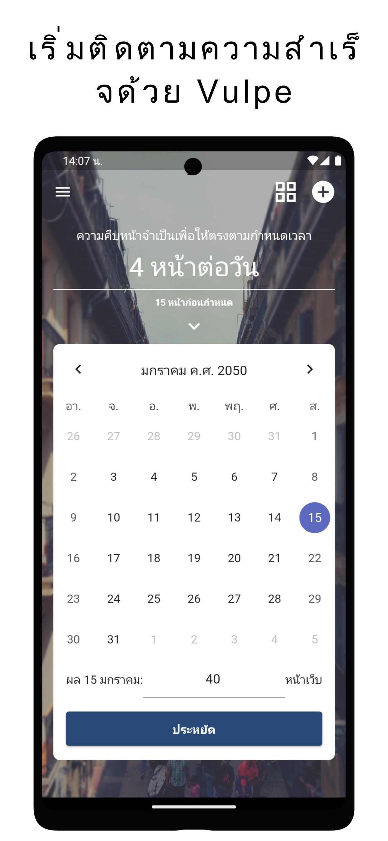 2. บันทึกความคืบหน้ารายวันตามจำนวนหน้าที่คำนวณโดยอัตโนมัติโดย Vulpe