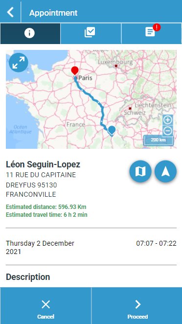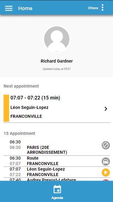 TourSolver Mobile allows resources to interact with TourSolver: agenda, tours to be carried out, visit sheet, status of visits, etc.