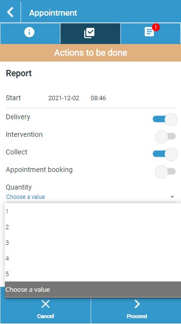 Several actions are then possible according to the configuration defined by your supervisor (in charge of the optimization of the rounds). This allows you to declare the different states of completion of the visits as they occur.