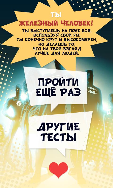 Скачать тест какой ты супергерой, пройти его и узнать кто же круче.