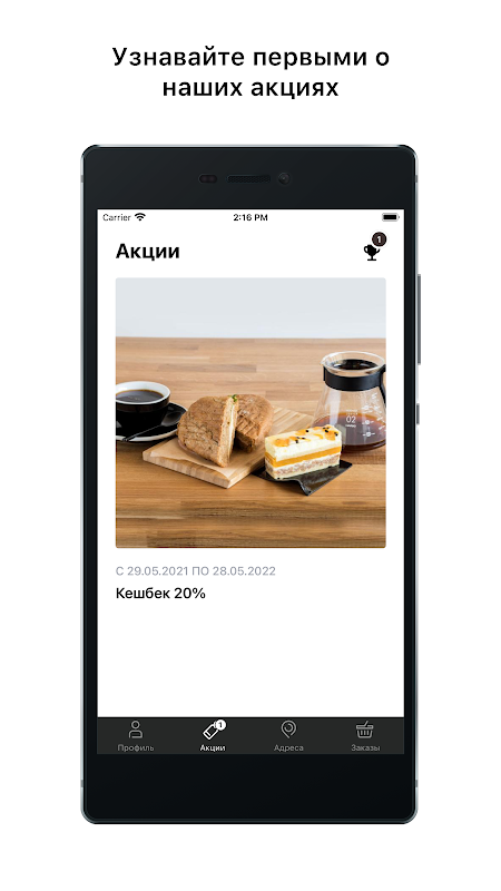 Aromatic coffee, fresh, smoothies and delicacies can be ordered in the mobile application