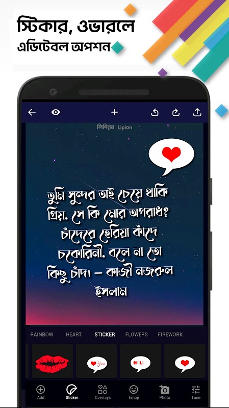 ডাউনলোড করুন "লিপিয়ন - ছবিতে বাংলা লিখন" এপ, আর ছবিতে বাংলা করুন করুন স্টাইলে।