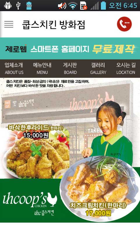 쿱스치킨은 최상급의(국내산) 재료만을 고집하며, 어떤 치킨보다 바삭한 맛을 자랑합니다.