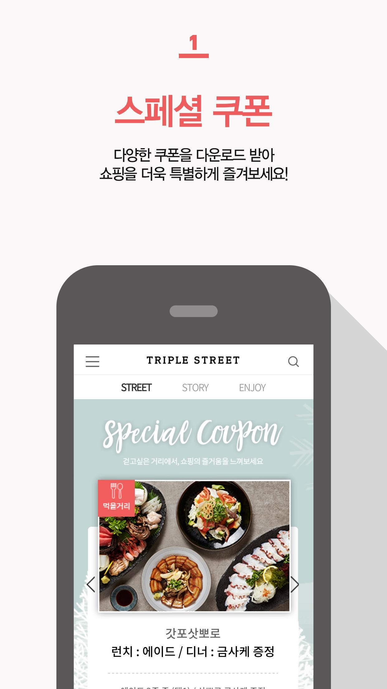 트리플스트리트 앱에서 제공하는 특별하고 다양한 쿠폰으로 쇼핑의 즐거움을 더해드립니다.