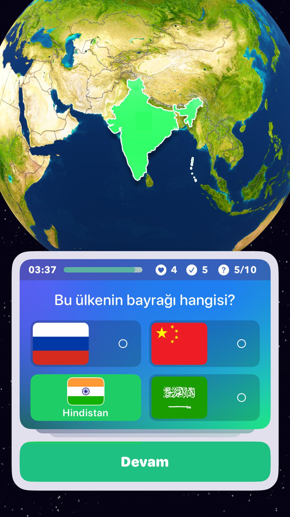 GeoGeek AR ile dünyanın en ilginç yerlerini keşfetmek için heyecan verici ve sanal bir yolculuğa çıkın. 3 zorluk seviyesinde, coğrafyanın çeşitli alanlarından zorlu sorularla karşılaştıkça coğrafi bilginiz test edilecek. Bu heyecan verici test ile coğrafya bilginizi geliştirin veya derinleştirin. Metropolleri bulun, nehirleri tanıyın, bayrakları atayın, ülke sınırlarını seçin, okyanusları adlandırın ve çok daha fazlasını yapın. Öğrenme içeriği neredeyse sonsuzdur.
