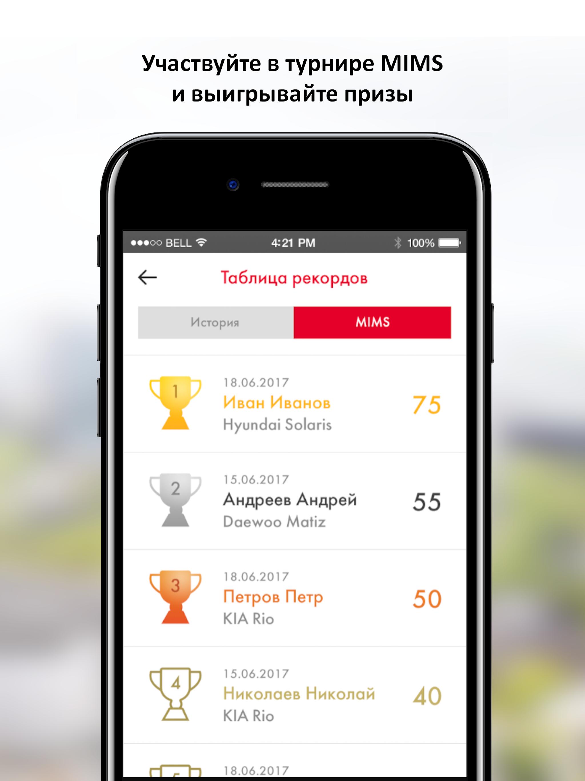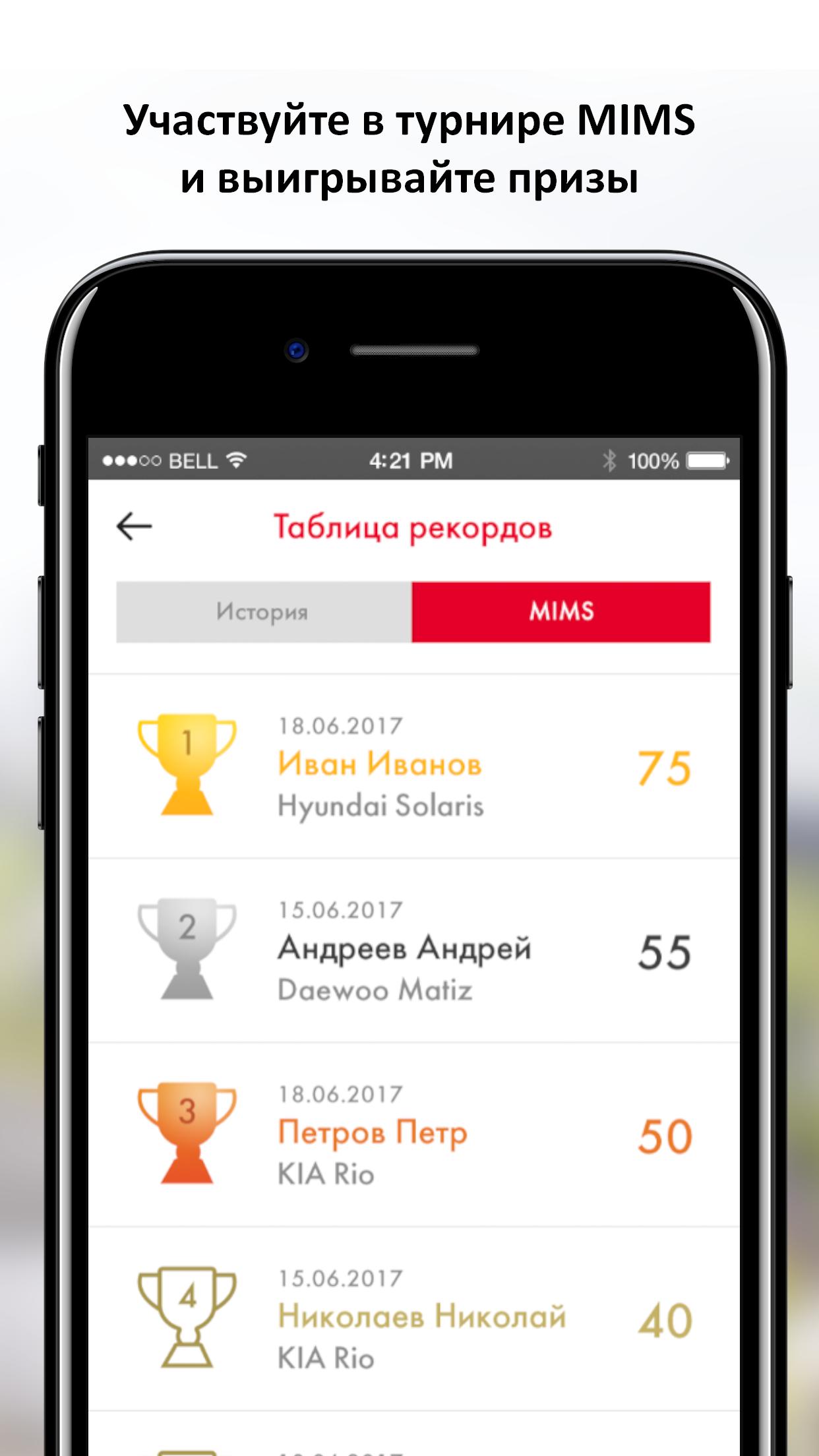 4. Возможность добавить свой лучший результат в турнирную таблицу, где можно будет проверить свои навыки вождения по сравнению с заездами других Пользователей.