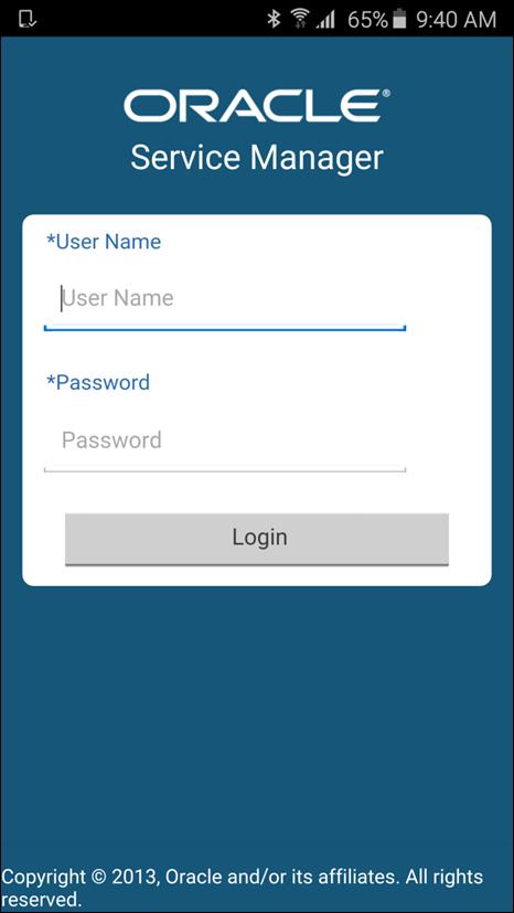 Oracle Mobile Service Manager for Oracle E-Business Suite is compatible with Oracle E-Business Suite 12.1.3 and 12.2.3 and above. To use this app, you must be a user of Oracle TeleService, with mobile services configured on the server side by your administrator. For information on how to configure mobile services on the server and for app-specific information, see My Oracle Support Note 1641772.1 at https://support.oracle.com