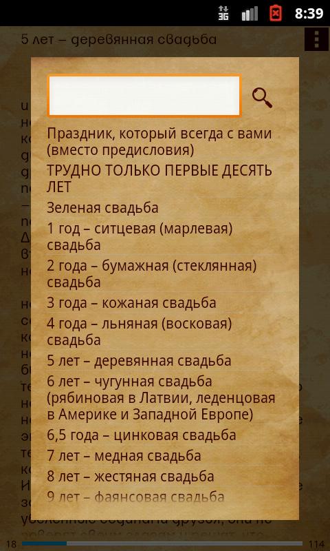 Среди множества прекрасных домашних праздников по самым разным поводам особое почетное место занимает торжество по случаю дня свадьбы – скромное, для узкого круга самых близких, или отмечаемое с размахом. Гости вручат вам подарки – к каждой дате специальные, символические, можно сказать, тематические – по названию годовщины. А радость дарить и получать, слава богу, тоже никто не в силах отменить. И наконец, праздники по случаю свадебной даты – совсем не лишняя возможность порадовать себя, родных и друзей результатами кулинарных изысканий и – еще раз себя – процессом творческого поиска и творческих находок в ходе этих изысканий. В данном приложении отмечены всевозможные свадебные даты, их особенности с подробными описаниями, а также кулинарные блюда для каждой из них. Сделайте ярче свою супружескую жизнь!Last updated on 2016年03月26日