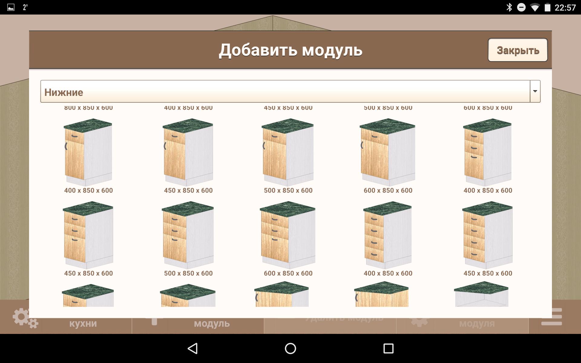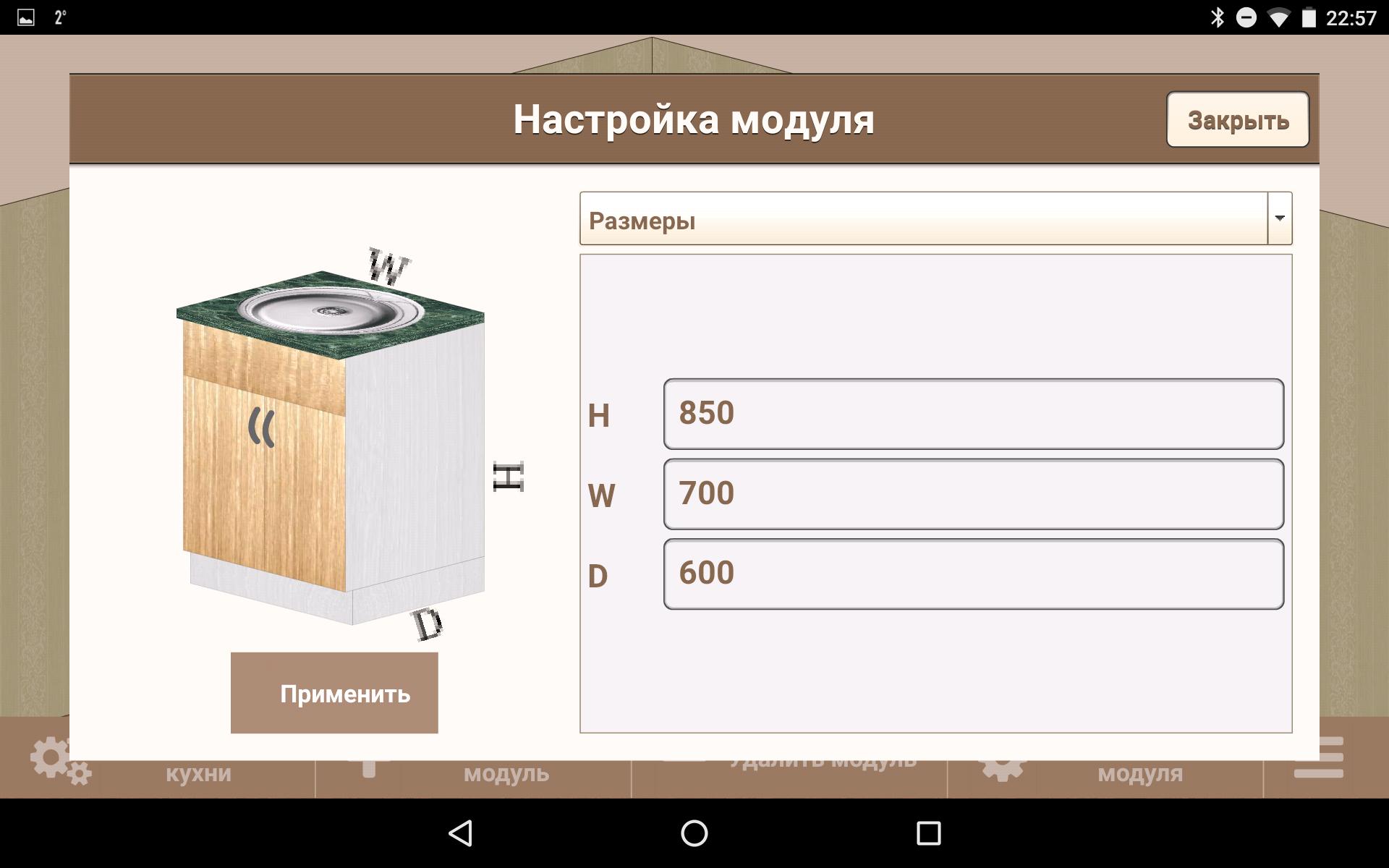 Предлагаем Вашему вниманию Кухонный конструктор. Данное приложение создано в помощь Вам при моделировании кухни, разработке дизайна, подборе интерьера. А так же приложение подскажет множество оригинальных идей при планировании Вашей идеальной кухни.