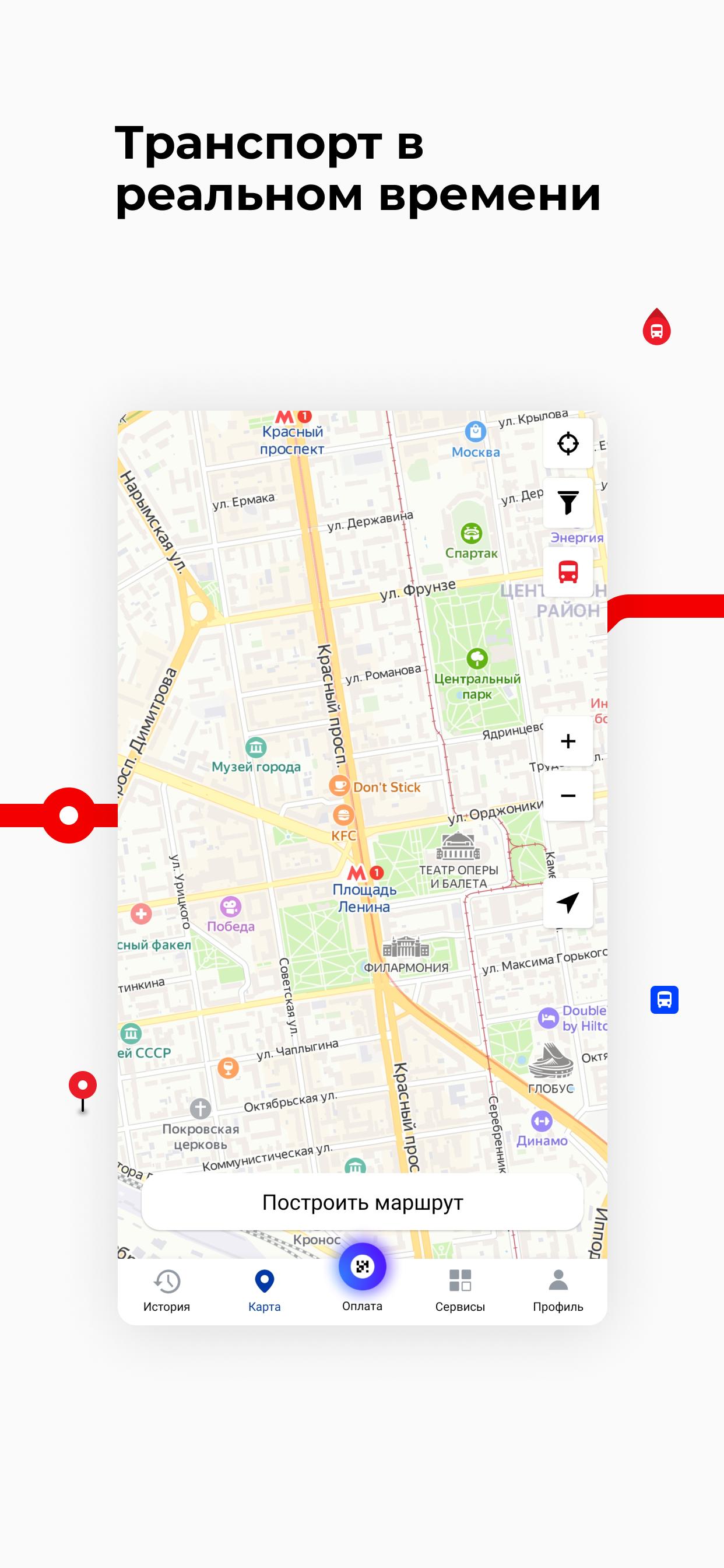 - Вы увидите расположение и движение общественного транспорта в режиме реального времени, так что будете знать, когда подходить к остановке.