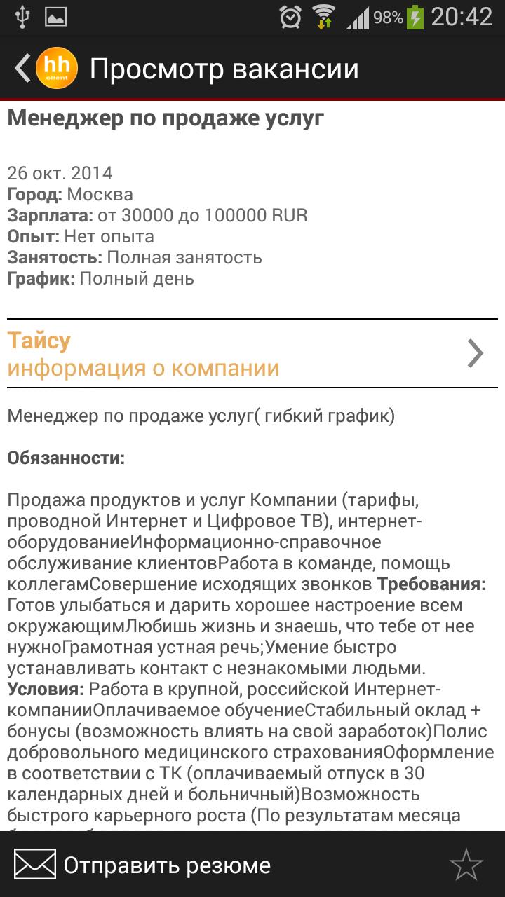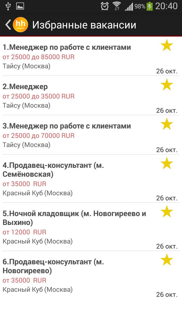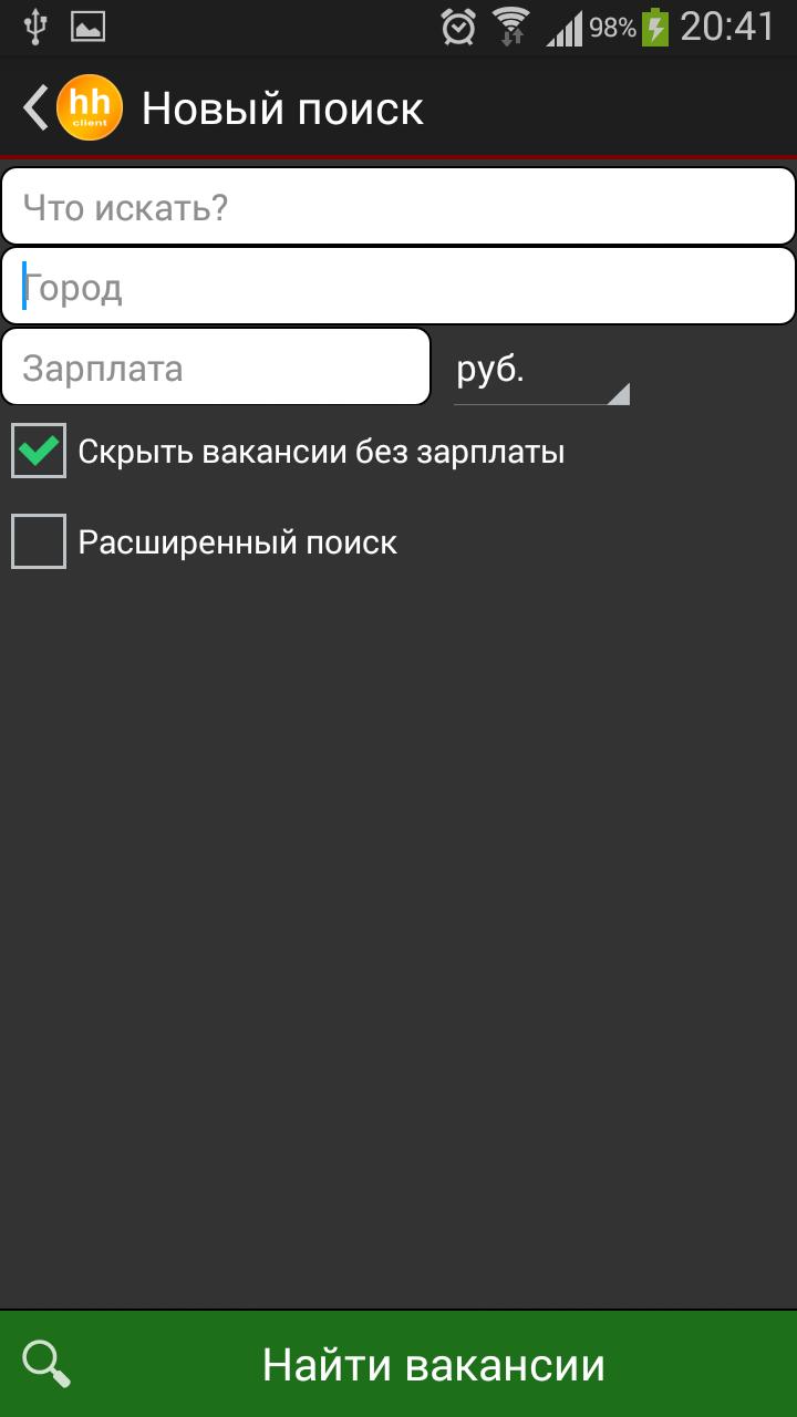 Удобное приложение для поиска вакансий на сайте hh.ru.
