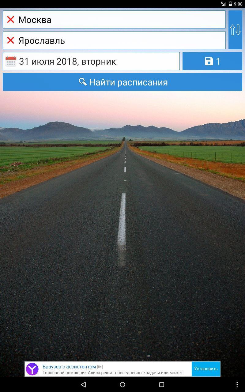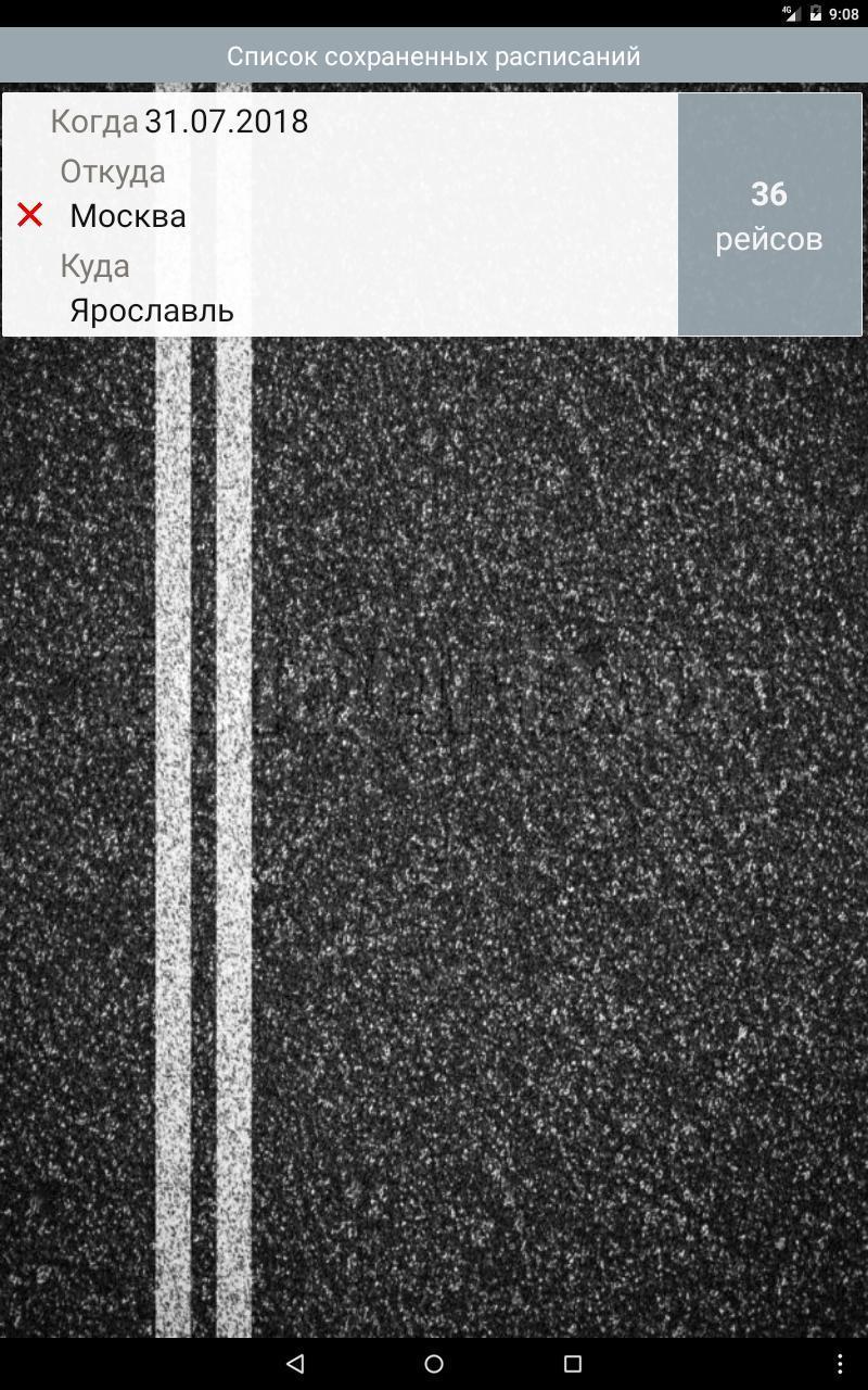 Это приложение позволяет не только узнать, но и сохранить расписание между городами, посёлками, деревнями и сёлами, что бы затем использовать его без доступа к сети Интернет.
