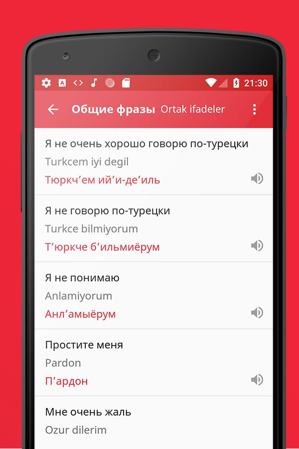 Турецкий разговорник теперь имеет много категорий. Добавлена возможность прослушать каждую фразу на турецком языке.