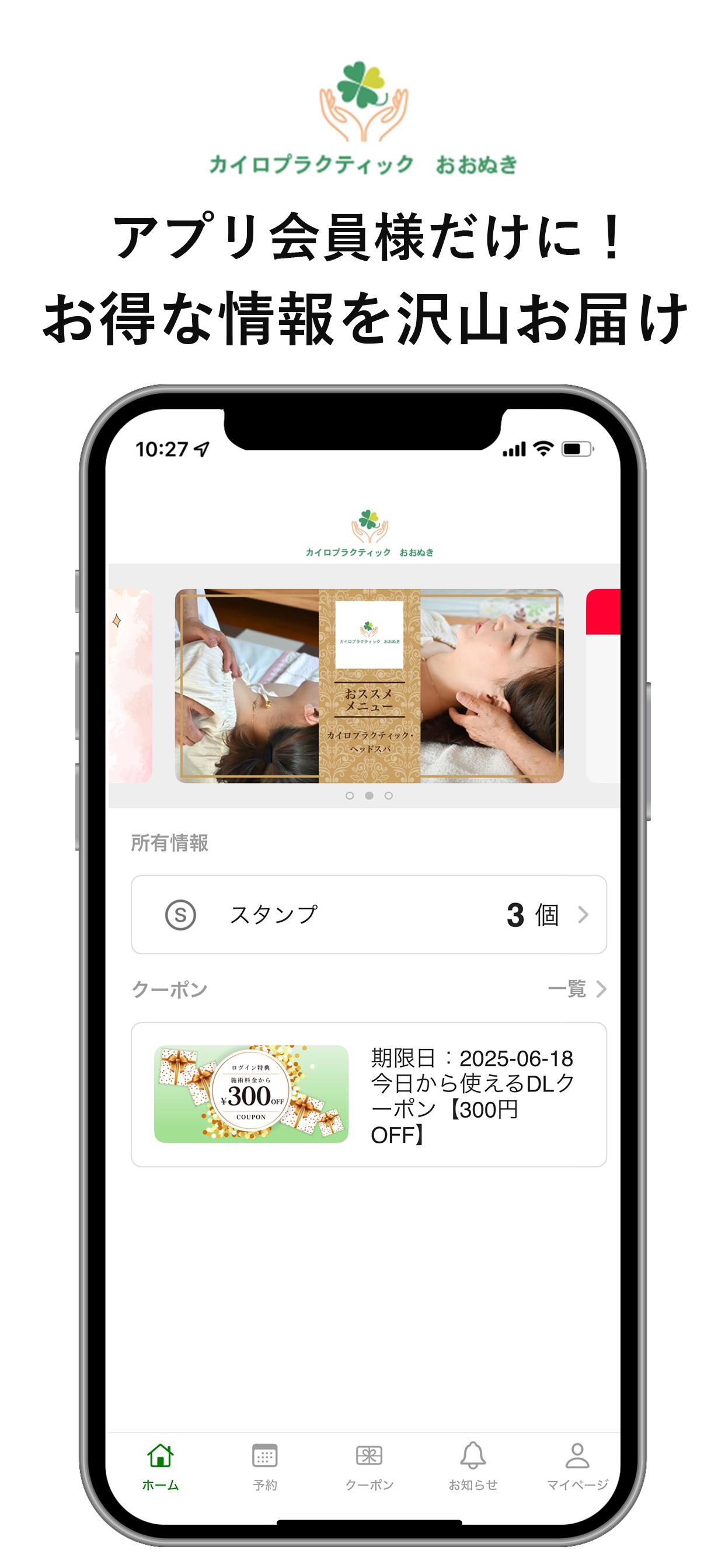 透過應用程序,您可以收到 Chiropractic Oonuki 的最新資訊和特別優惠。您還可以隨時透過智慧型手機查看菜單和所需時間、進行預訂等。透過安裝應用程序,您可以更方便、更輕鬆地使用 Chiropractic Oonuki。