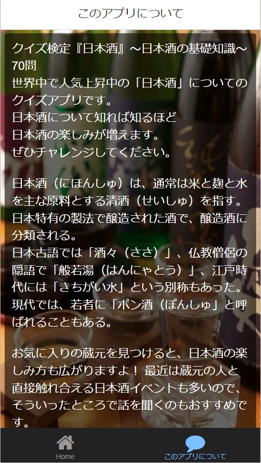 世界中で人気上昇中の「日本酒」についてのクイズアプリです。