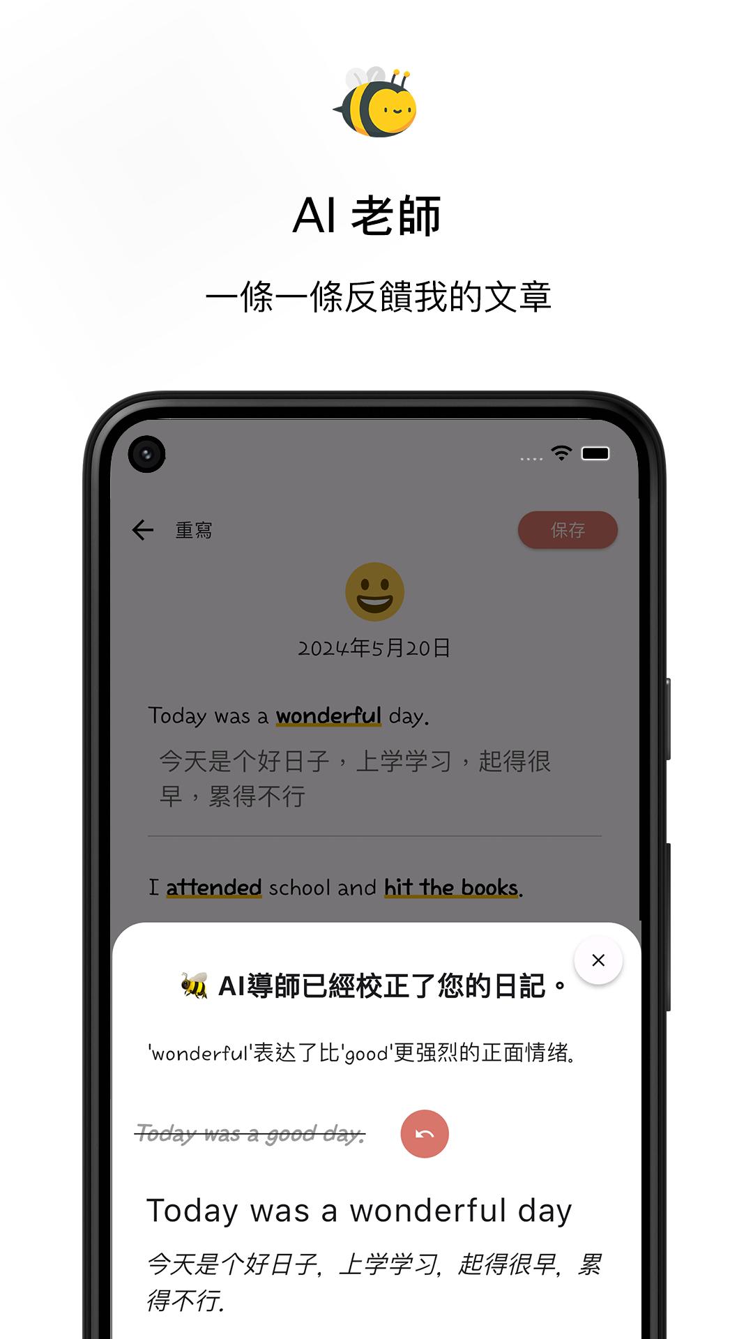 根據你所知道的來寫英語日記。AI導師會實時校正,使你的英文完美無誤。