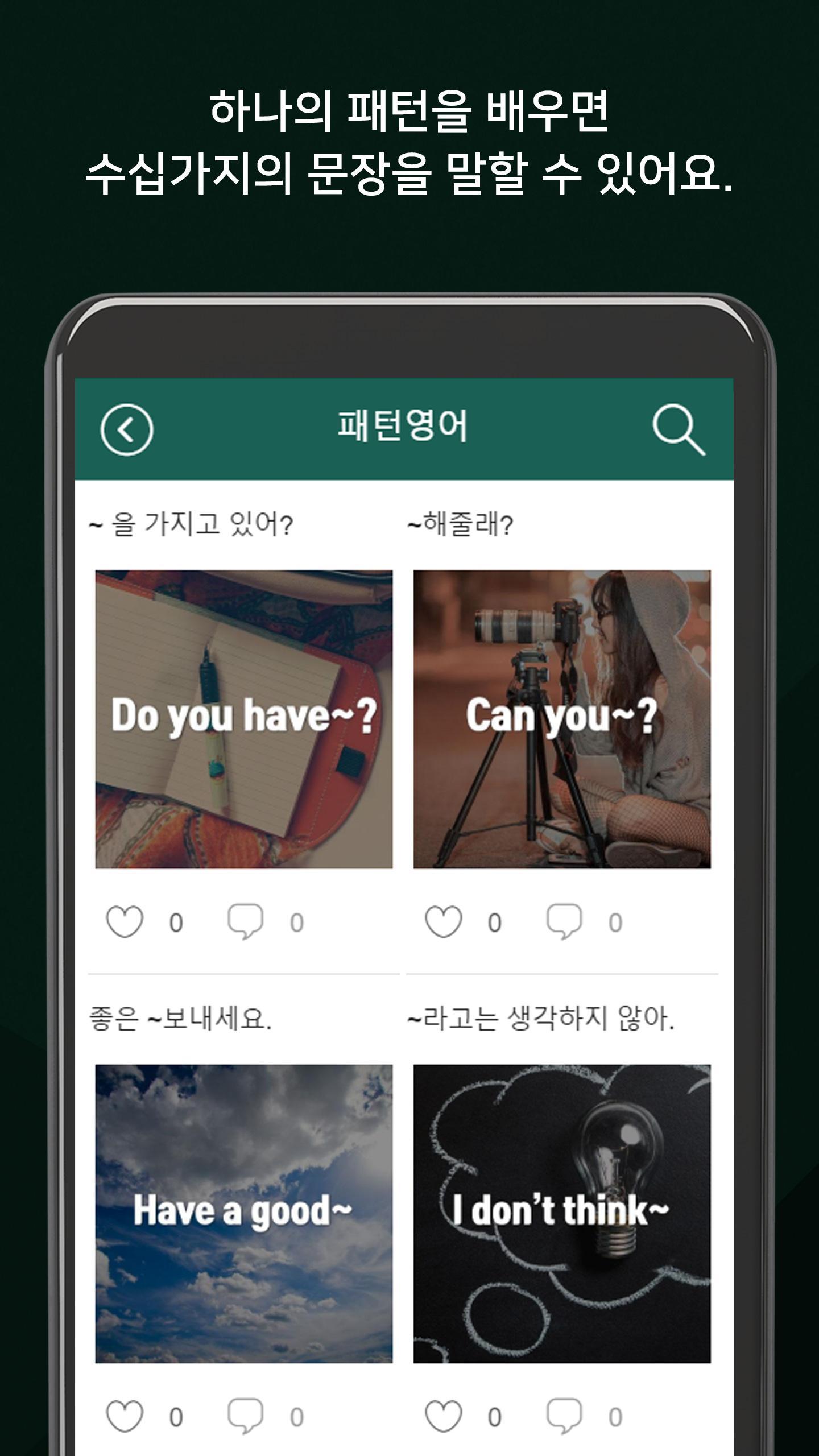 왕초보 영어패턴부터 심화과정까지. 하나의 패턴을 배우면 수십가지의 문장을 말할 수 있어요.