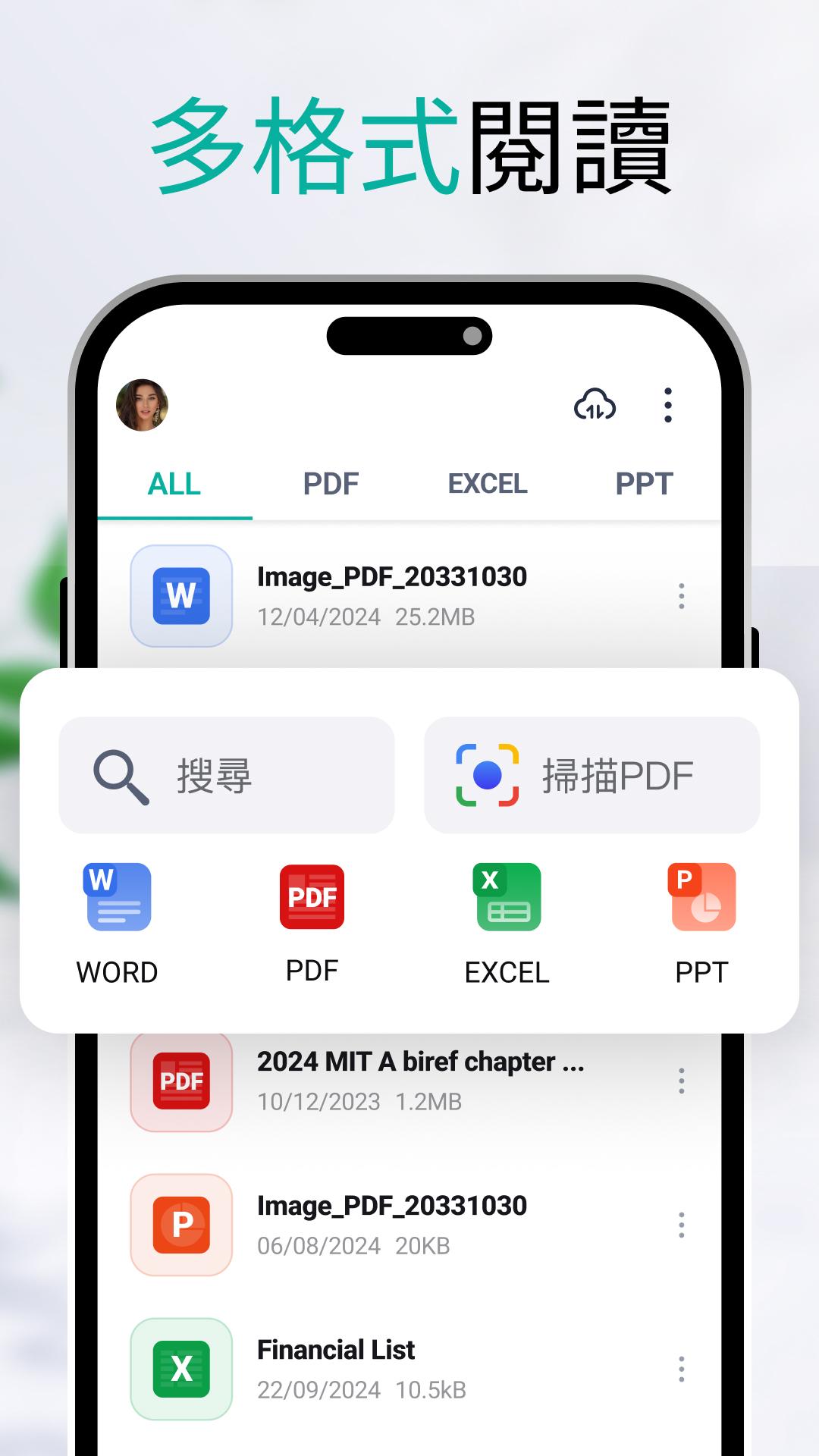 All Document Reader 是一款多功能一體式文件閱讀器,旨在支援多種文件格式,如 Word、Excel、PPT 和 PDF。它提供無縫、高效的文件管理和閱讀體驗。