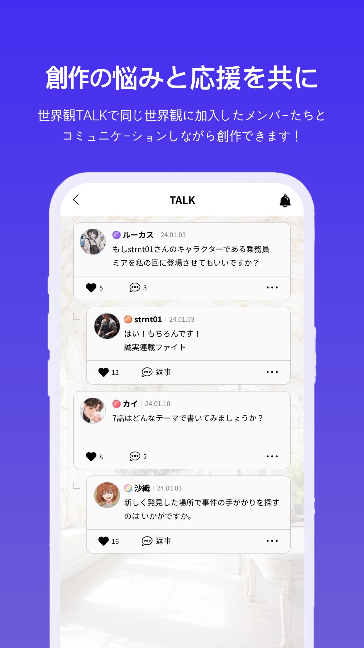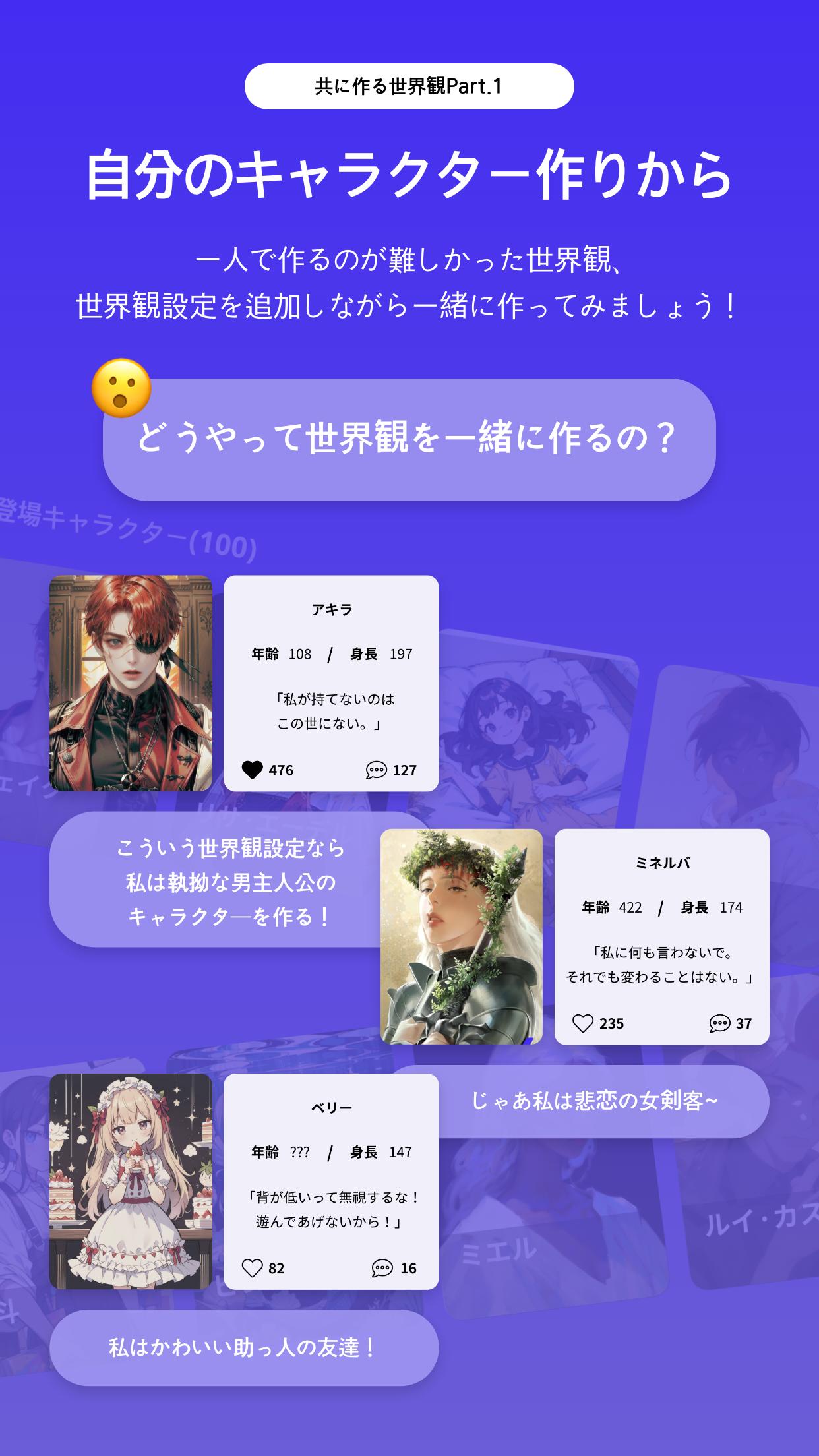 在共同創造的世界觀中共享相同的場景(人物/地點/事件),並創造你自己的人物故事。
