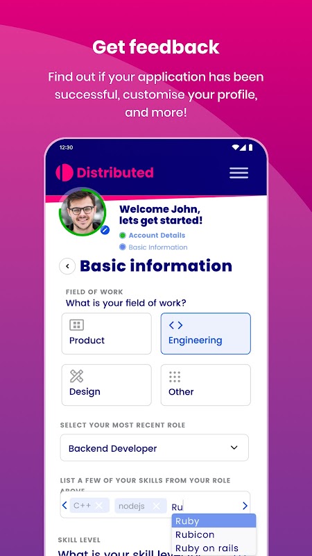 下載應用程序後,您需要填寫一些基本信息,例如您的工作領域和經驗長度。它可以快速輕鬆地完成,之後您將能夠訪問以下功能: