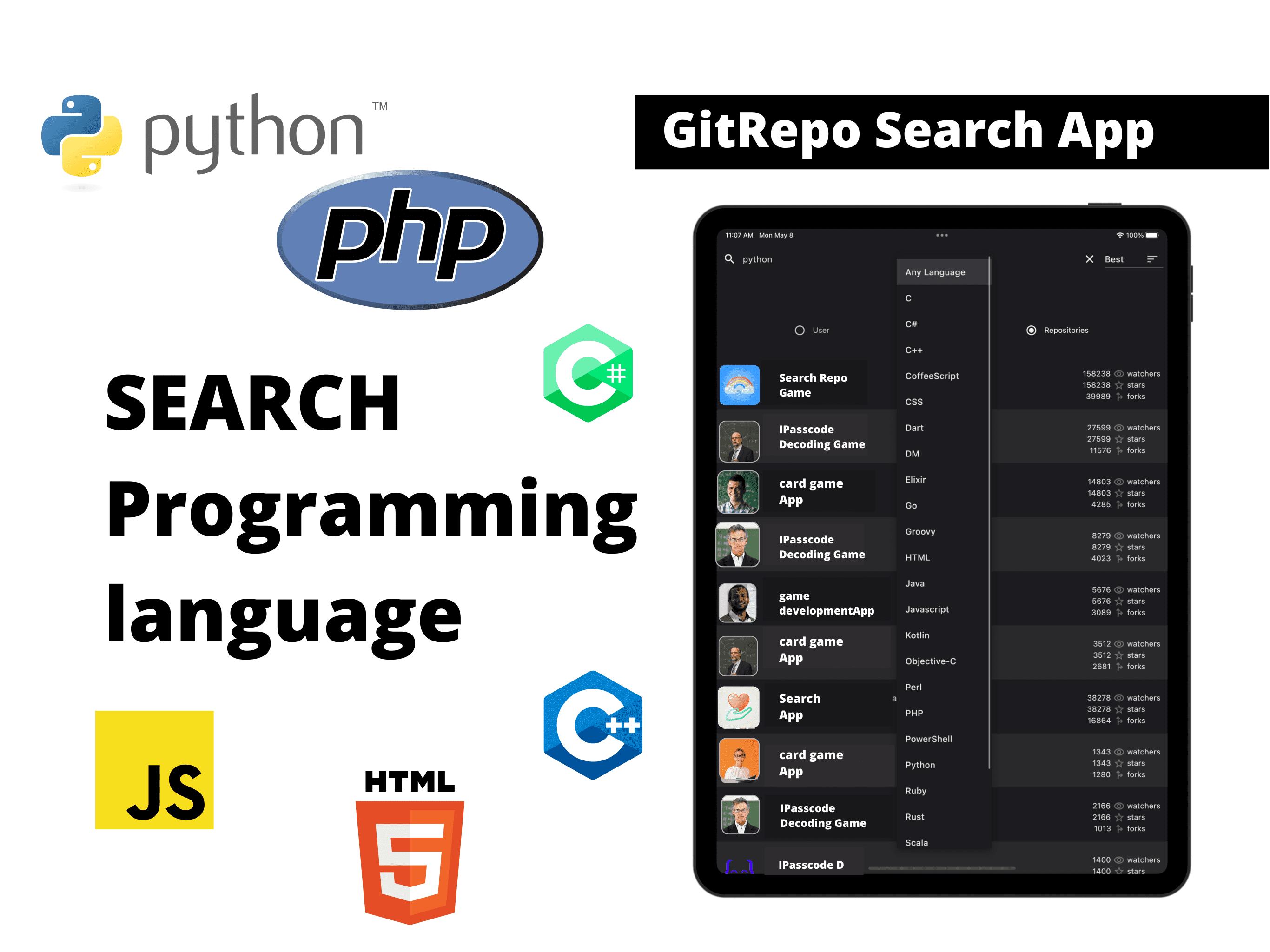 按編程語言搜索。GitHub 搜索應用程序:輕鬆搜索 GitHub
