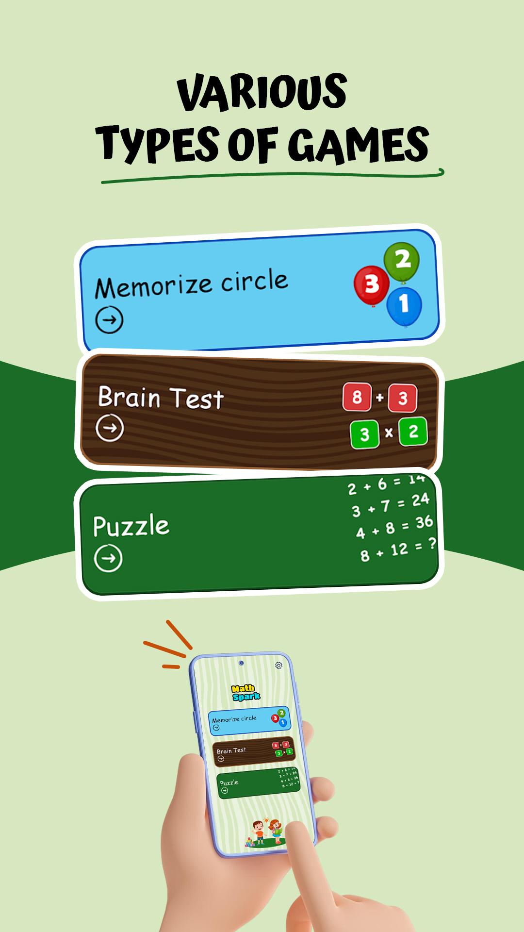 ⭐ Puzzle : Math spark 還包括各種數學問題,可以幫助用戶發展他們的數學方程求解技能。