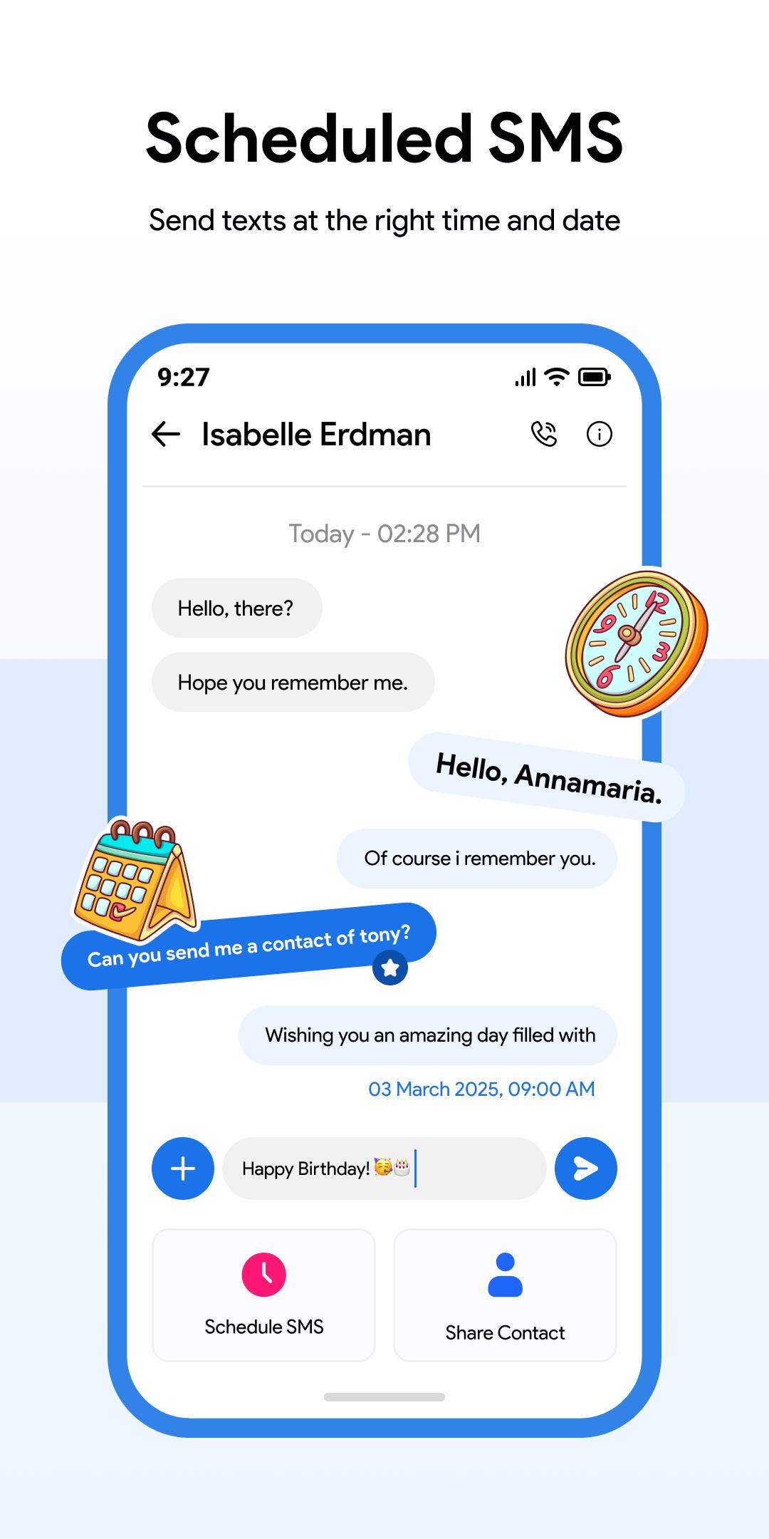 簡訊 - 簡訊應用程式是您手機預設簡訊應用程式📱的智慧型升級版。它可以讓您輕鬆發送群發簡訊、分享聯絡人以及管理所有簡訊。這款簡訊應用程式可在所有安卓裝置上完美運作✅。