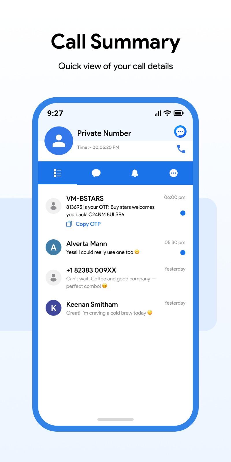 通話結束後,這款簡訊應用程式會立即顯示實用資訊和快速💡選項。