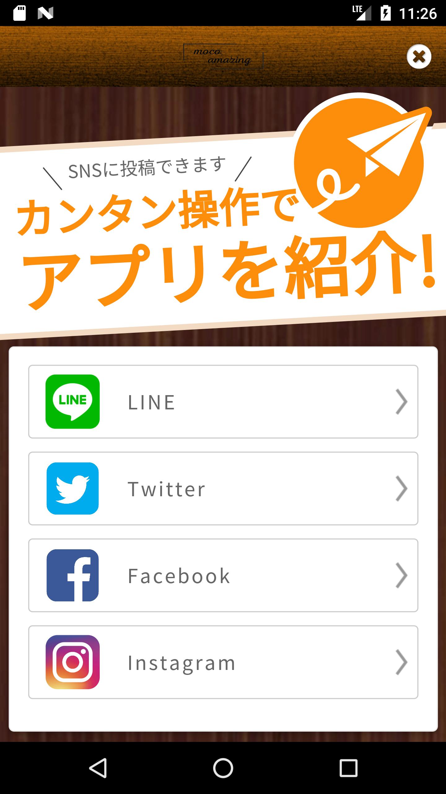moco.amazingのアプリをSNSを通じてお友達に紹介する事ができます。