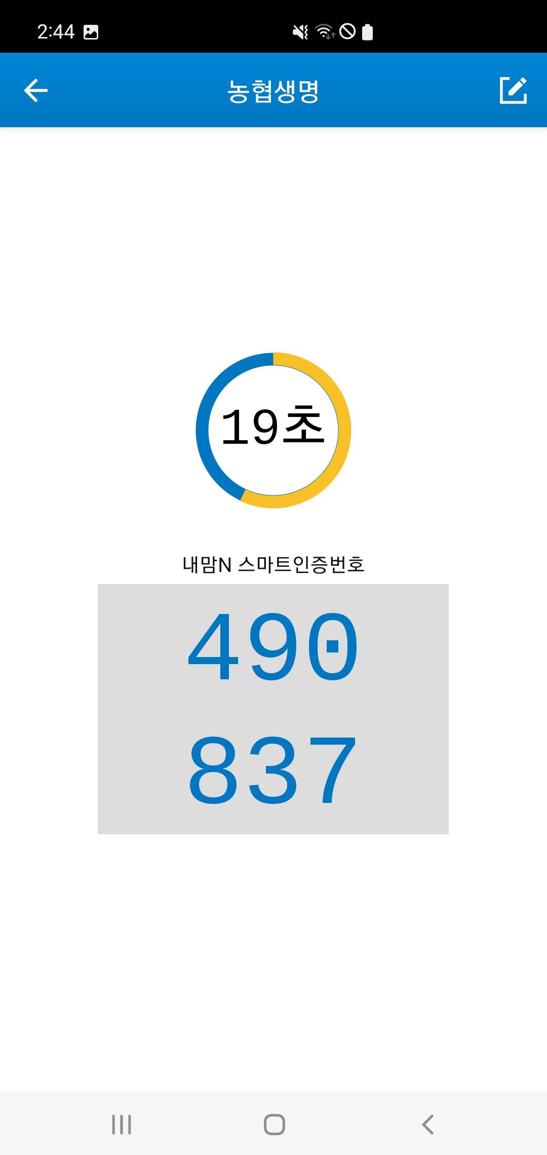 NH Nonghyup Life My Mom N+智能认证提供一次性随机密钥,可用于用户认证。