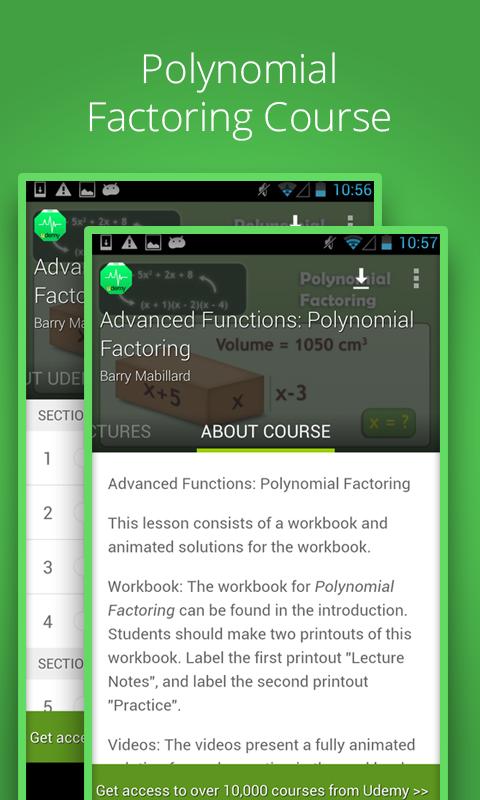 Install the "Polynomial Factoring Course" app now and join over 4 million students who are already learning on Udemy.