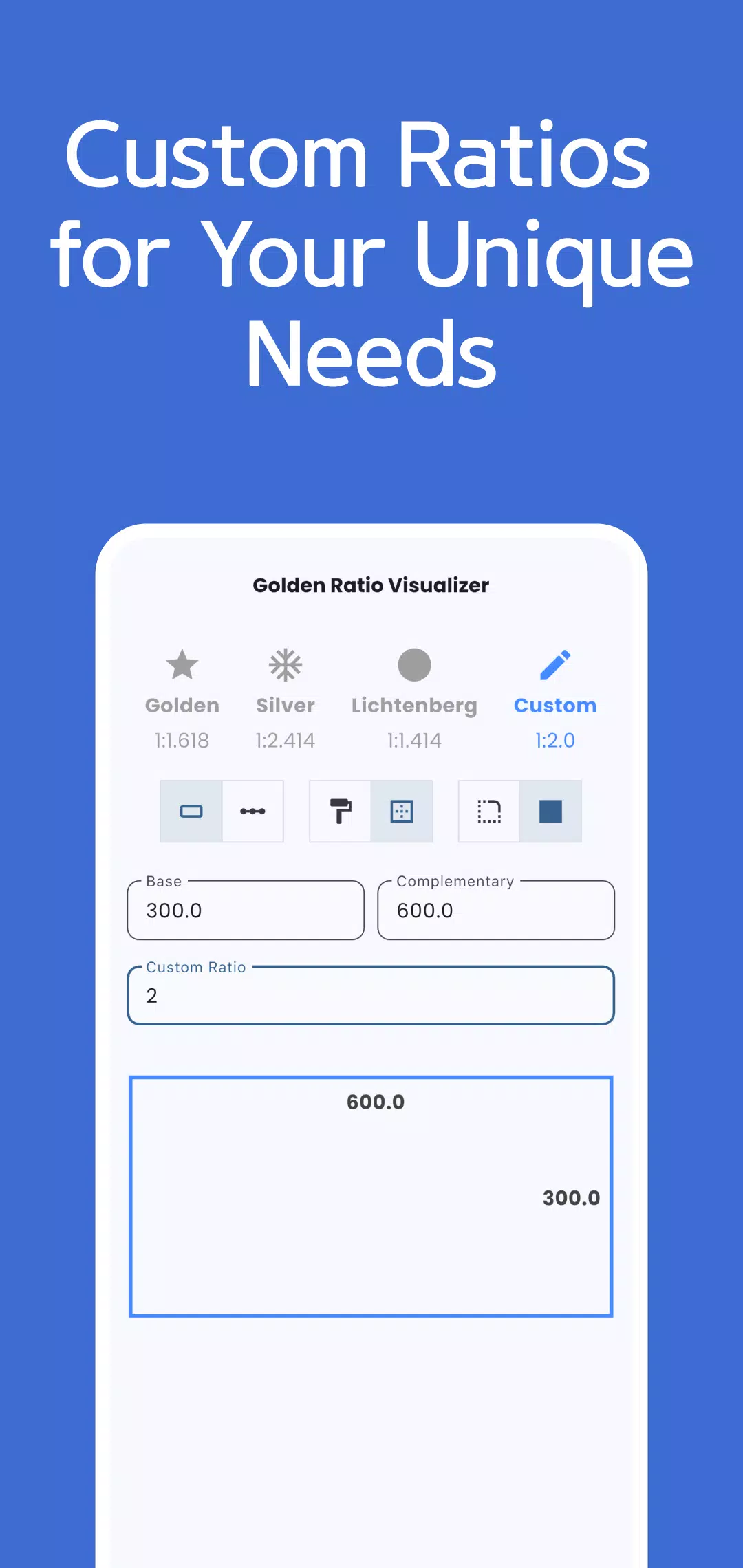 - 黃金、白銀和自訂比率:在流行比率之間無縫切換並個性化您自己的比率。