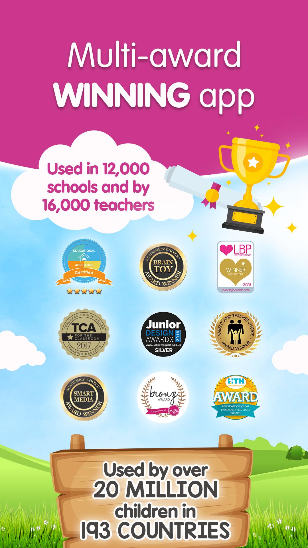 • 高度激勵:獎勵系統由金蛋、可收藏的寵物和遊戲組成,激勵孩子繼續學習。