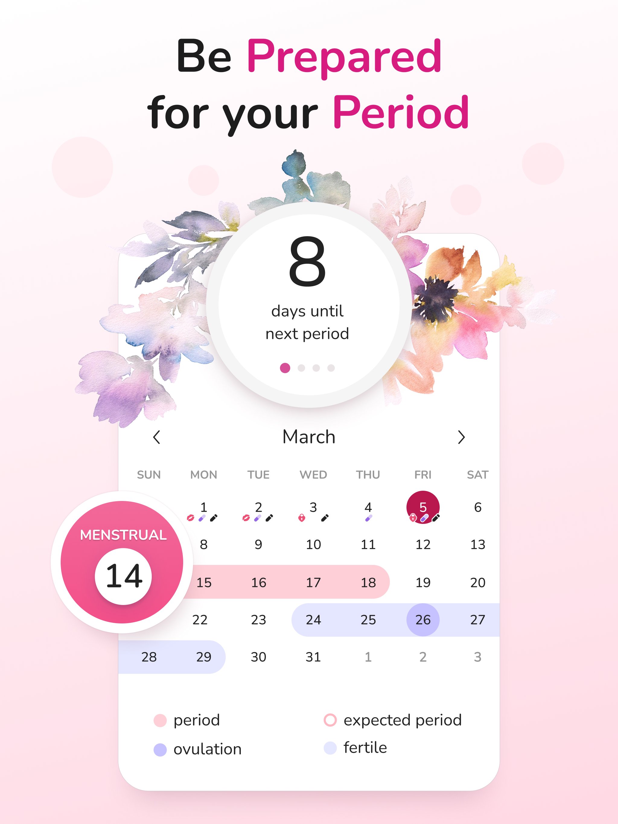 Elegant, easy-to-use period tracker for fertility, PMS symptoms, and more