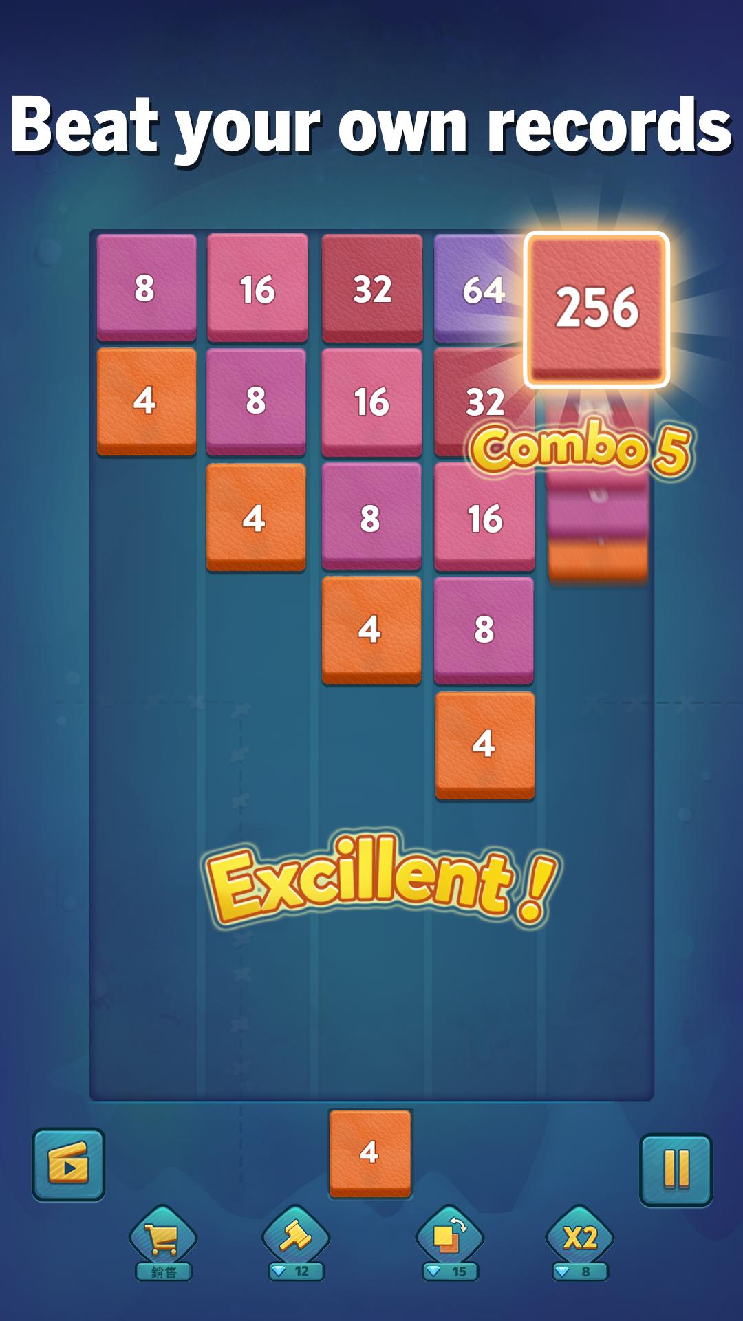 一個令人上癮且有趣的 2048 合併數字拼圖。 點擊並射擊以合併 X2 塊