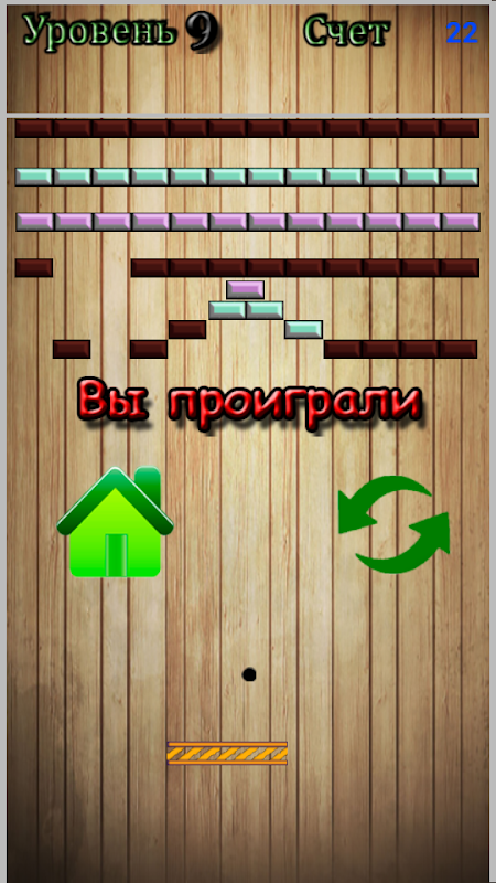 Игровой экран представляет собой приятный глазу фон из деревянных дощечек, на котором располагаются разноцветные блоки, которые нужно разбивать с помощью ядра, посылаемого движущейся платформой. Правила игры элементарны и будут понятны даже маленькому ребенку. В Разрушителе присутствует десять уровней сложности, с каждым последующем стена из блоков, которую нужно пробить, утолщается, а скорость полета ядра становится все выше.
