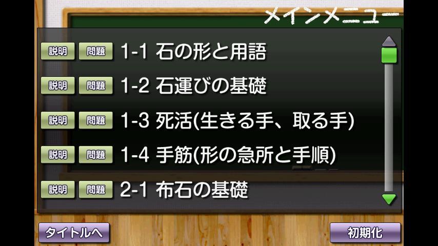 細かい項目別に学べる為、既に囲碁をご存知の方も復習に役立ちます。