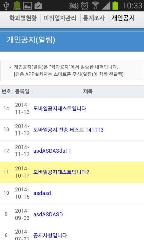 우리대학교 취업통계관리(조사) 전용 APP 입니다.