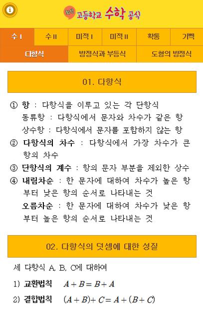 - 약 5메가 정도의 적은 용량으로 모든 공식 보기 가능