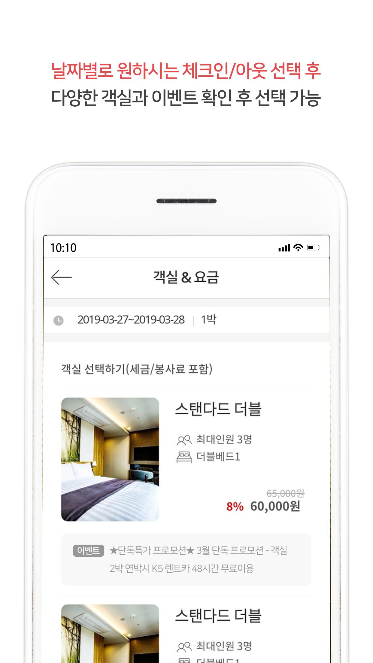 - 요금/예약: 객실 바로 예약 및 예약내역 조회