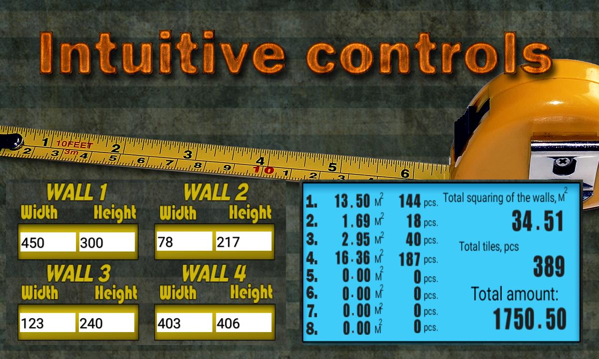 - The resulting number of tiles is calculated exactly according to the size of the walls and does not require trimming additions (more details below *).