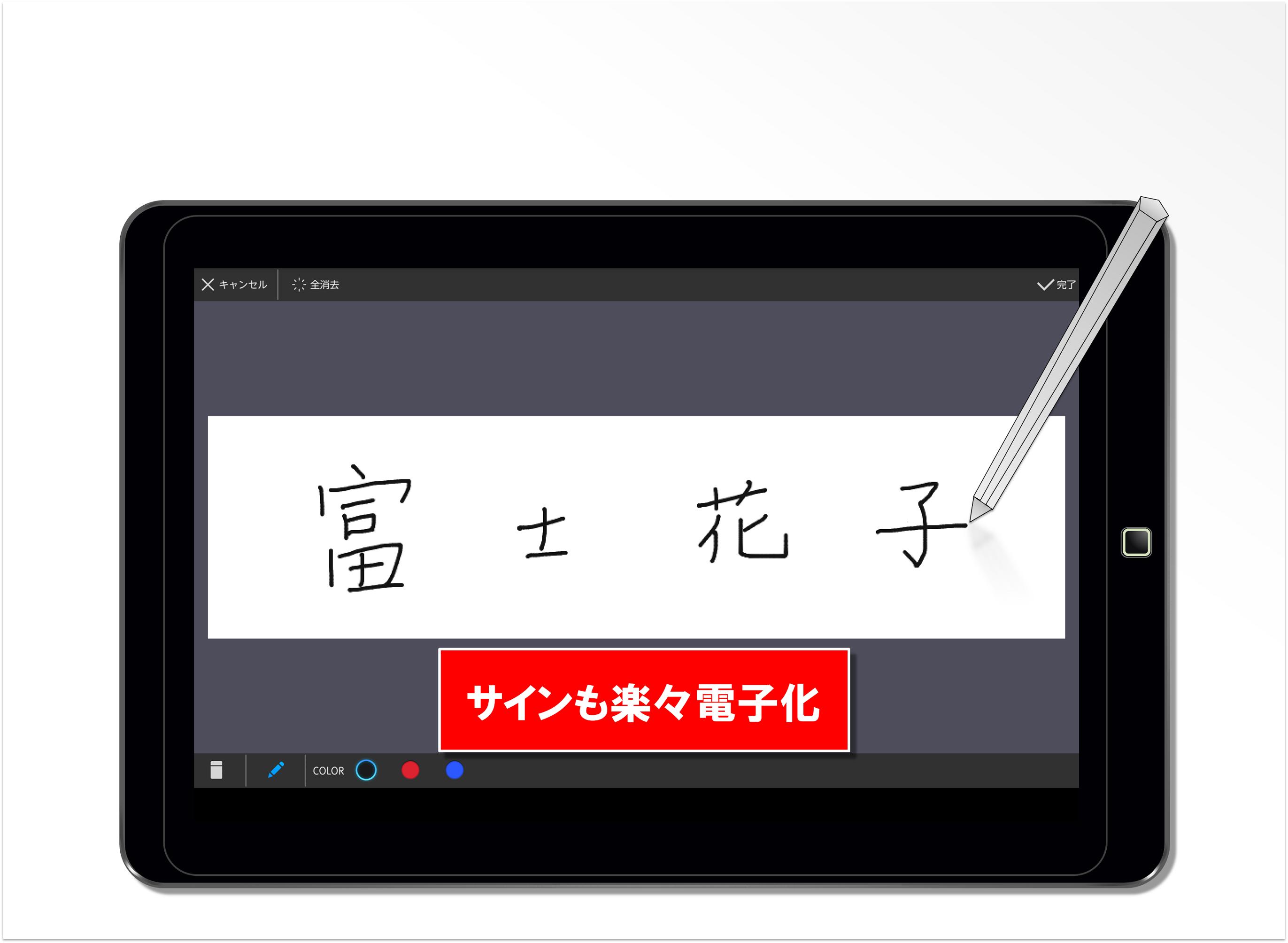 本製品をインストールすることで、「Interstage List Creator Tablet Option」で生成したSmart帳票をスマートデバイス上で表示できます。表示されたSmart帳票には、従来の紙の帳票に記入するのと同じようにスマートデバイス上で手書きやチェックなどを記入できます。