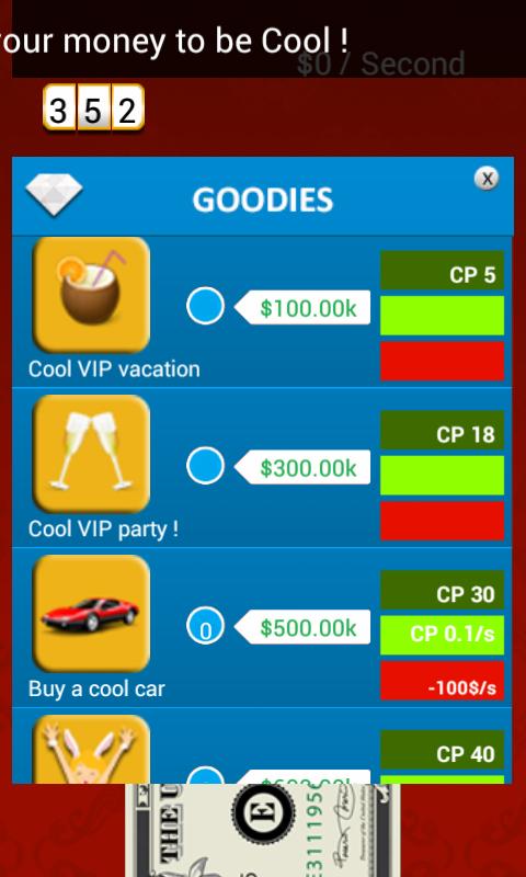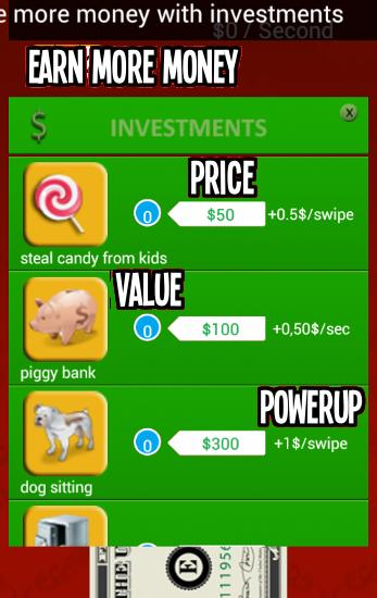 Earn more money by making investments. Spend your money to become the Coolest !